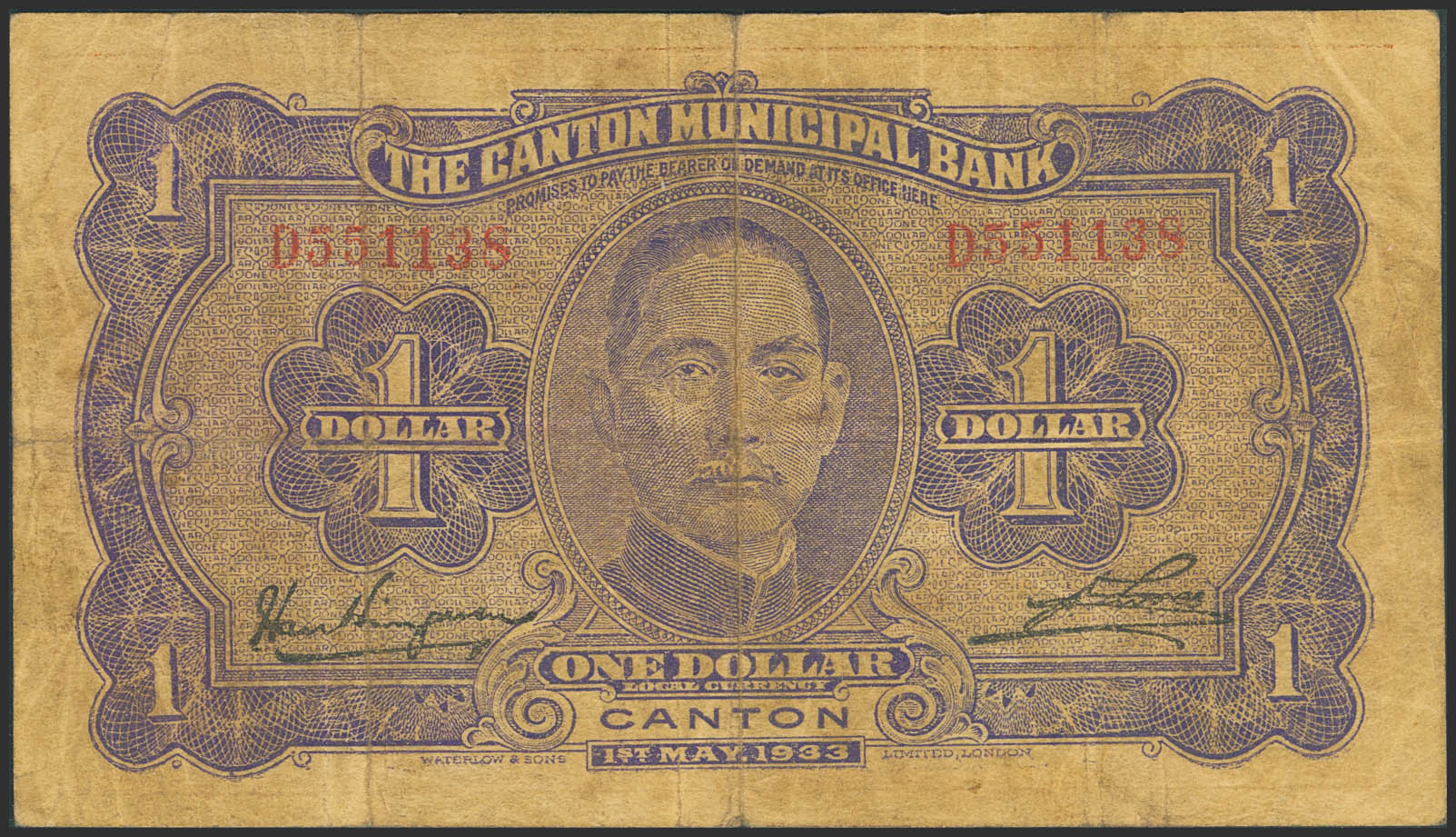 CHINA. 1 Dollar. May 1, 1933. Canton Municipal Bank. (Pick: S2278a). Very Fine.