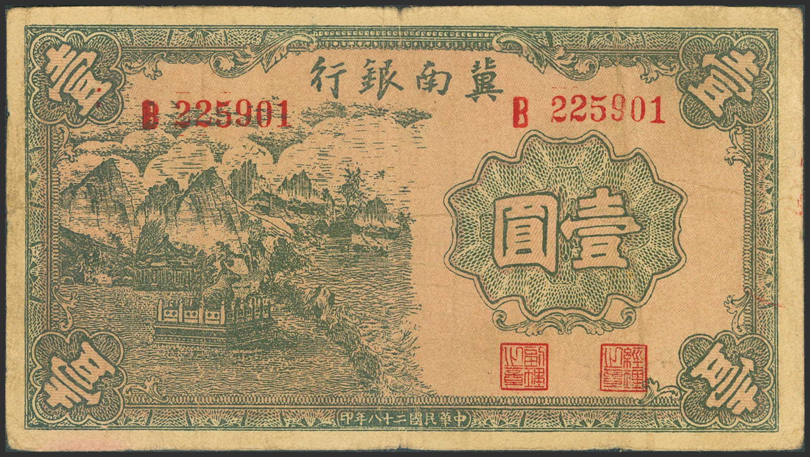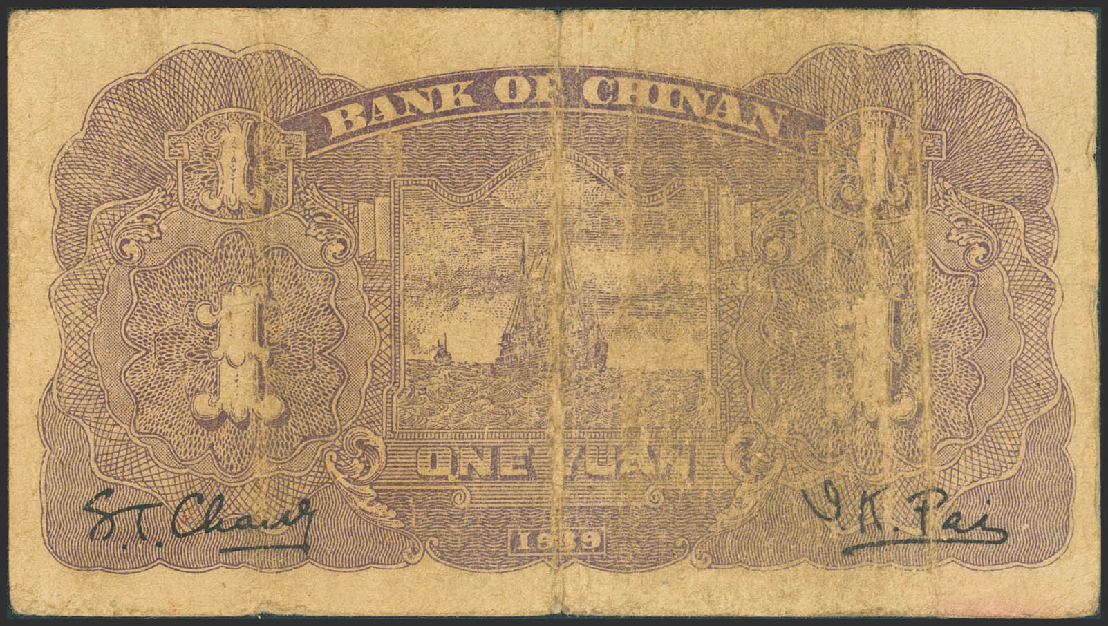 English CHINA. 1 Yuan. 1939. Bank of Chinan. (Pick: S3067). Fine.