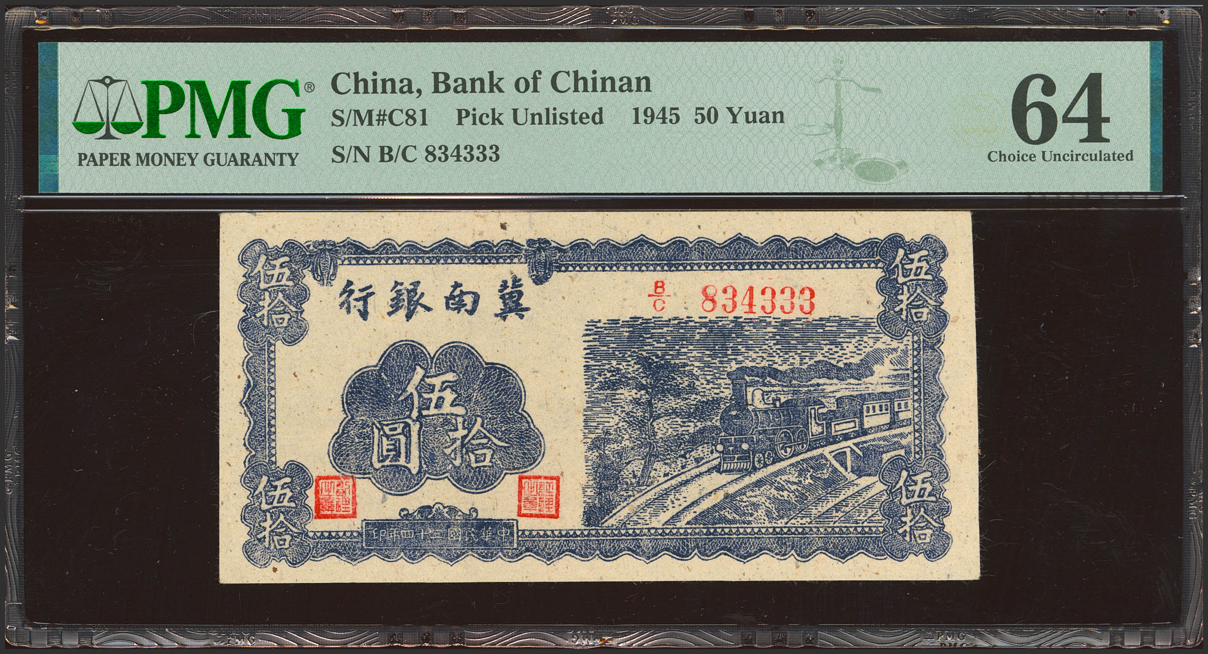 CHINA. 50 Yuan. 1945. Bank of Chinan. (Pick: unlisted, SM: C81). PMG64.