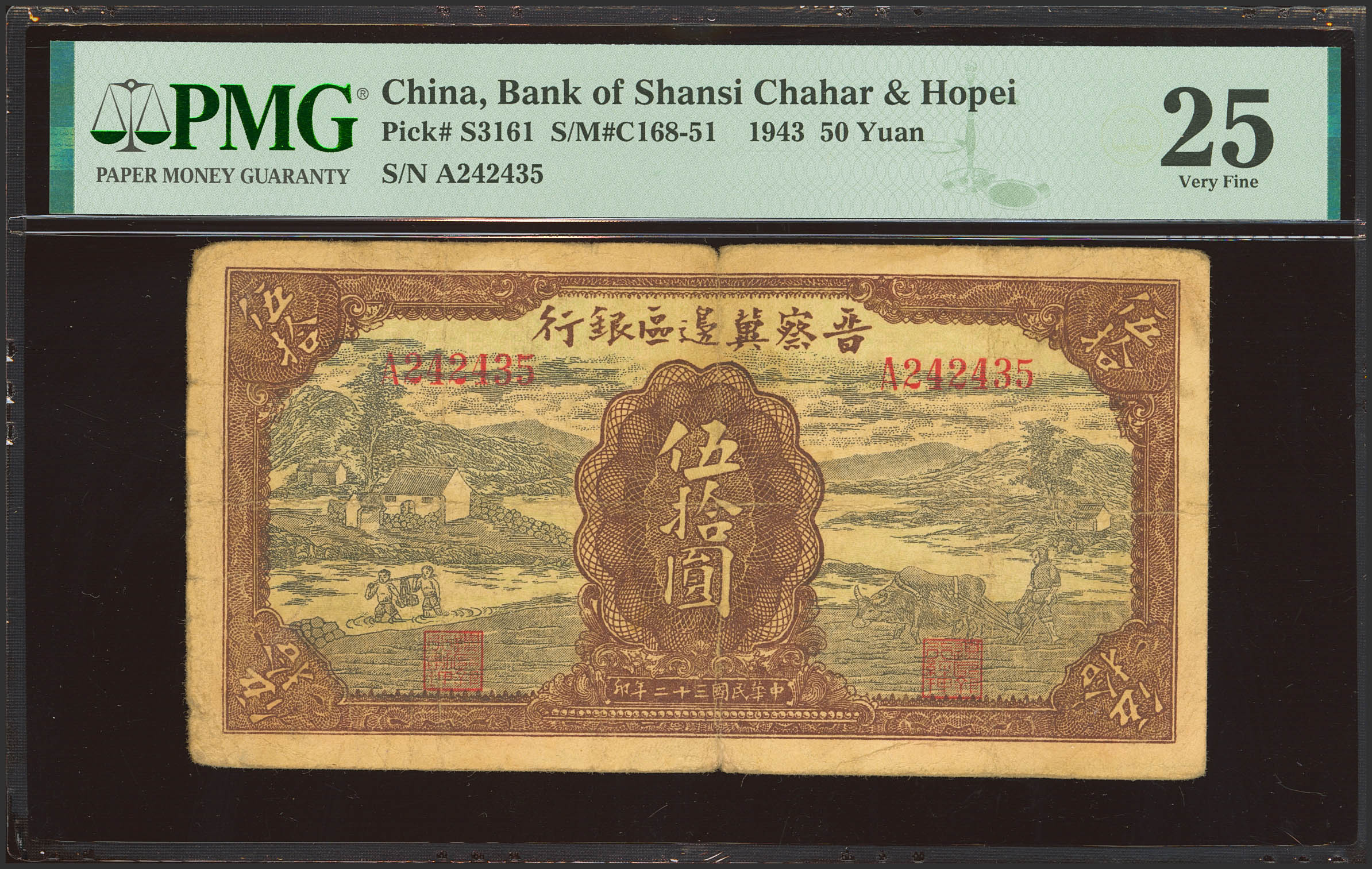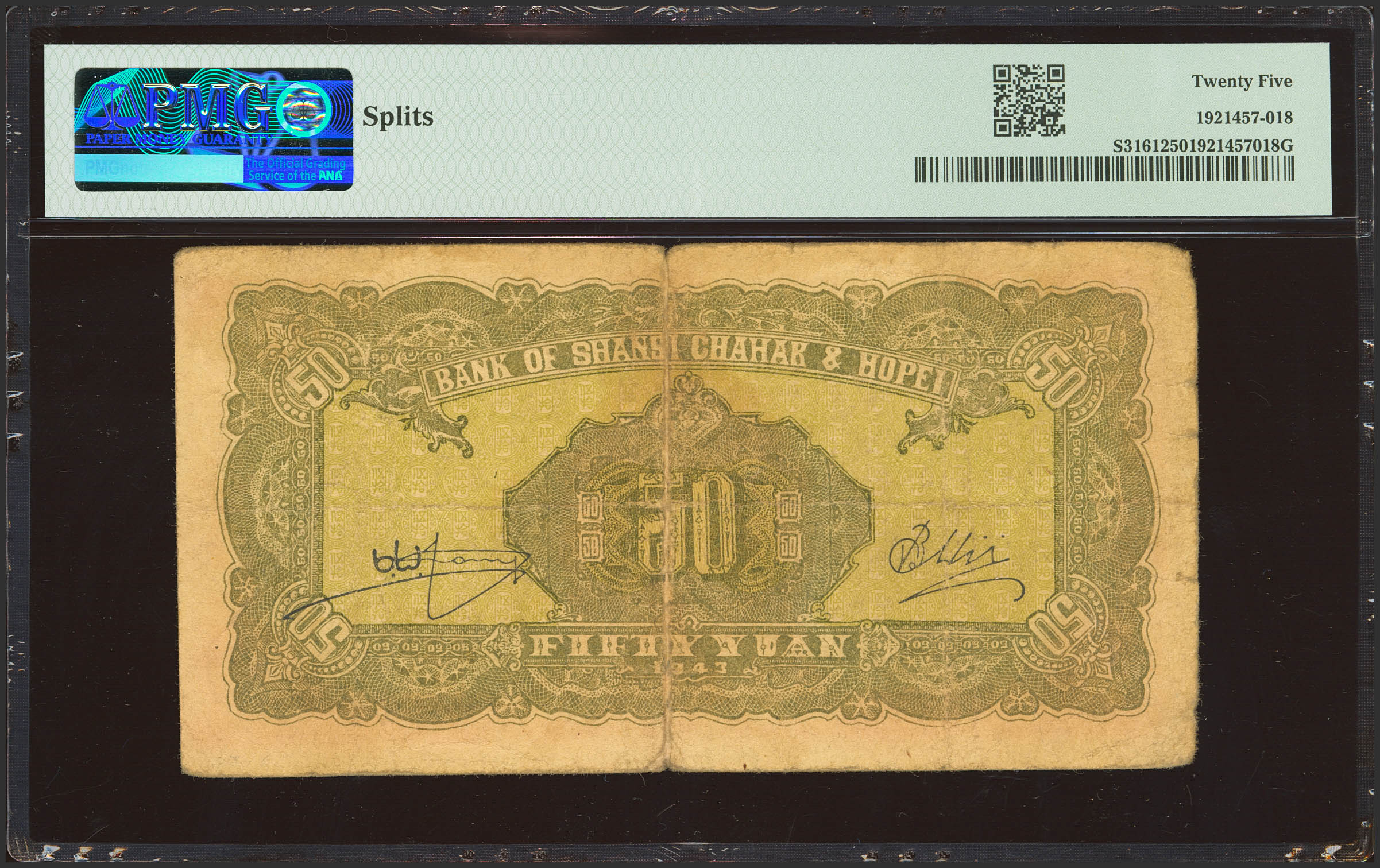 CHINA. 50 Yuan. 1943. Bank of Shansi. Chahar and Hopei. (Pick: S3161, SM: C168-51). PMG25 (splits).