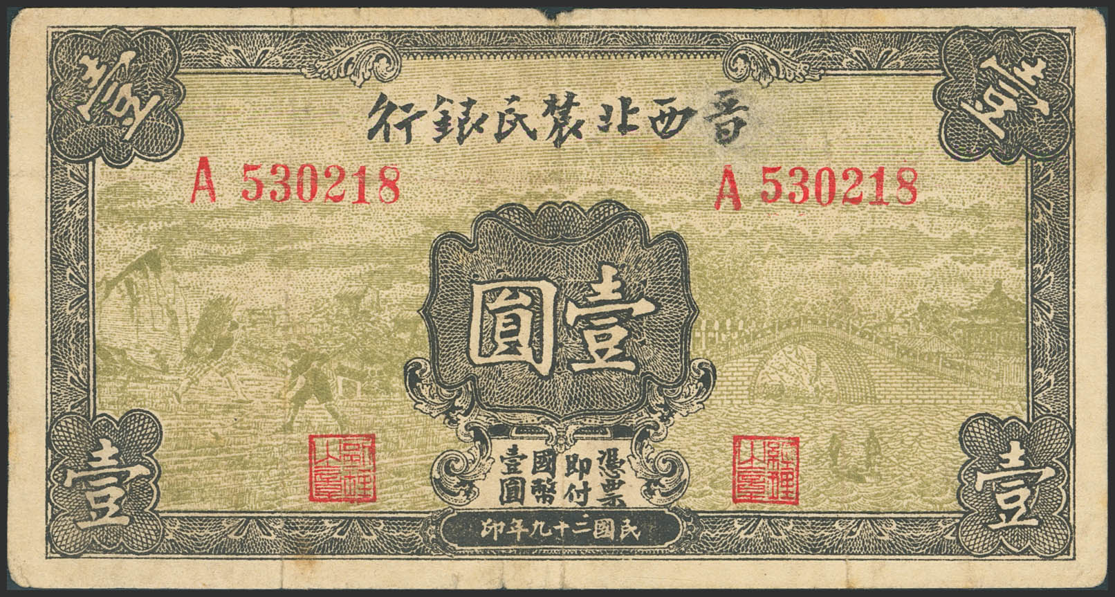 CHINA. 1 Yuan. 1940. Altered note. Farmers Bank of Northwest China. (Pick: S3293a). Extremely Fine.