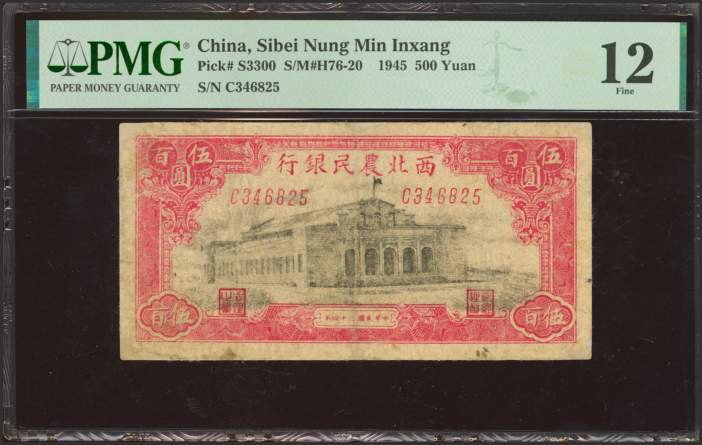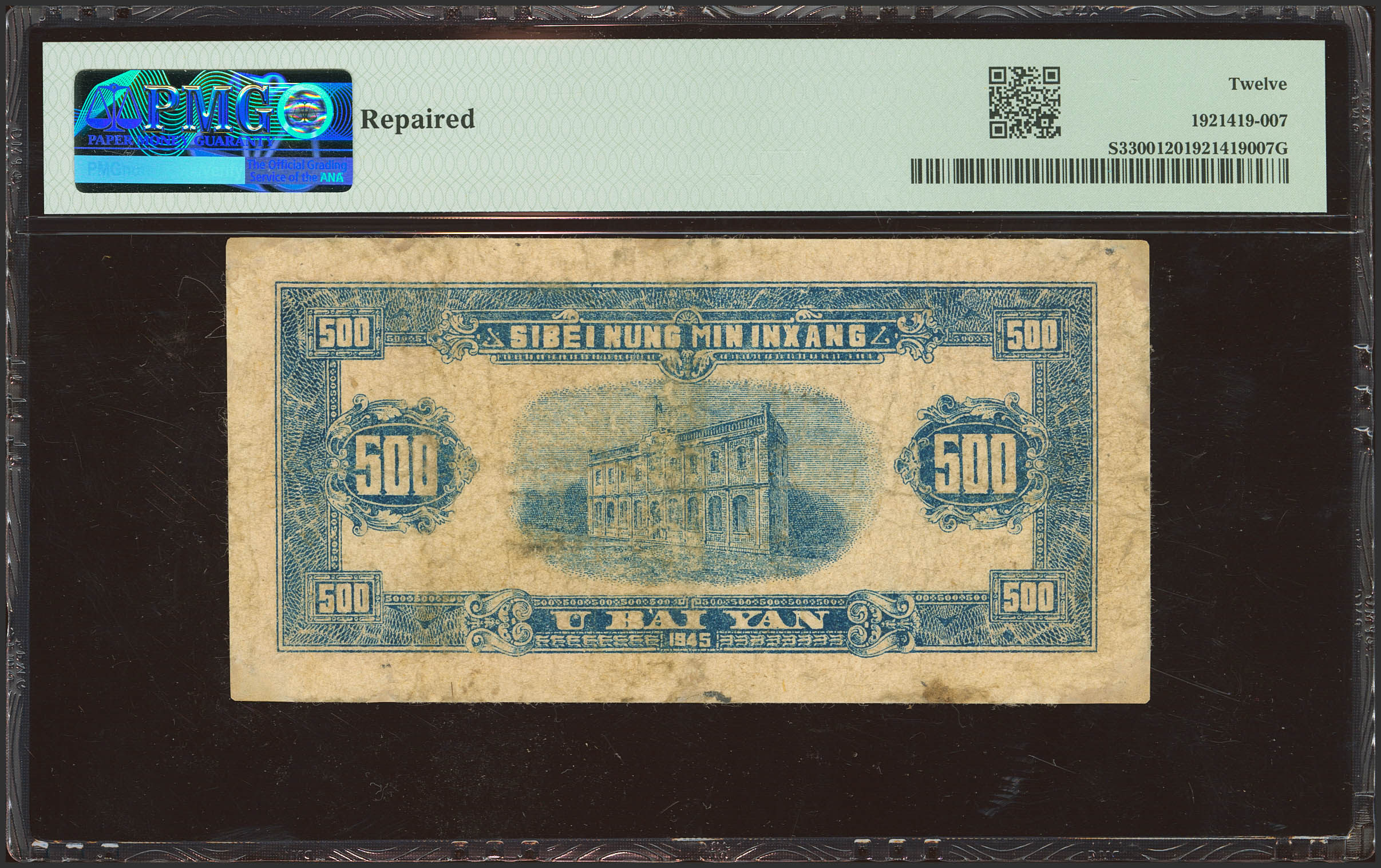 CHINA. 500 Yuan. 1945. Farmers Bank of Northwest China. (Pick: S3300, SM: H76-20). PMG12 (repaired).