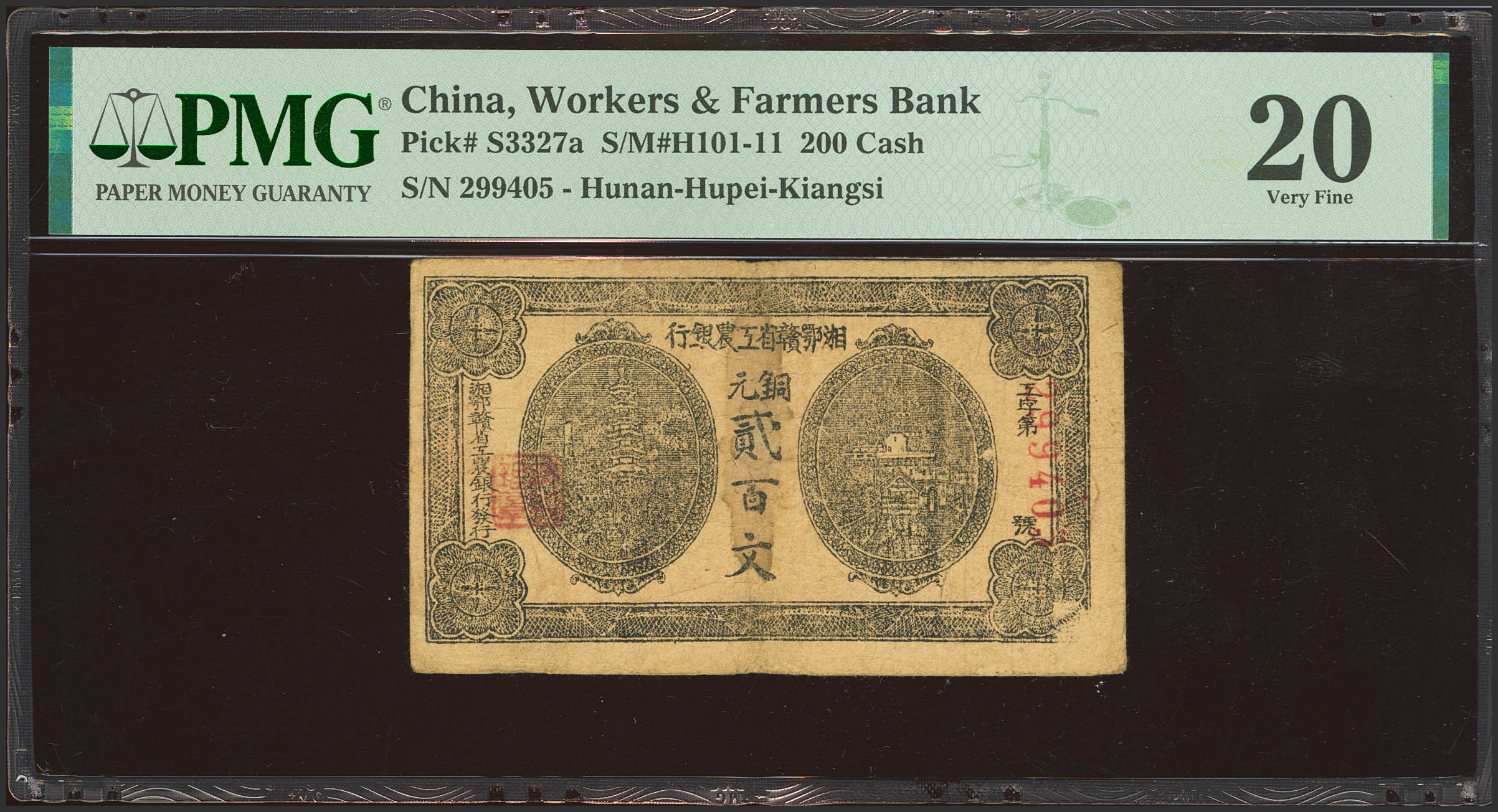 CHINA. 200 Cash. Not Dated. Hunan-Hupei-Kiangsi Workers and Farmers Bank. (Pick: S3327a, SM: H101-11). PMG20.