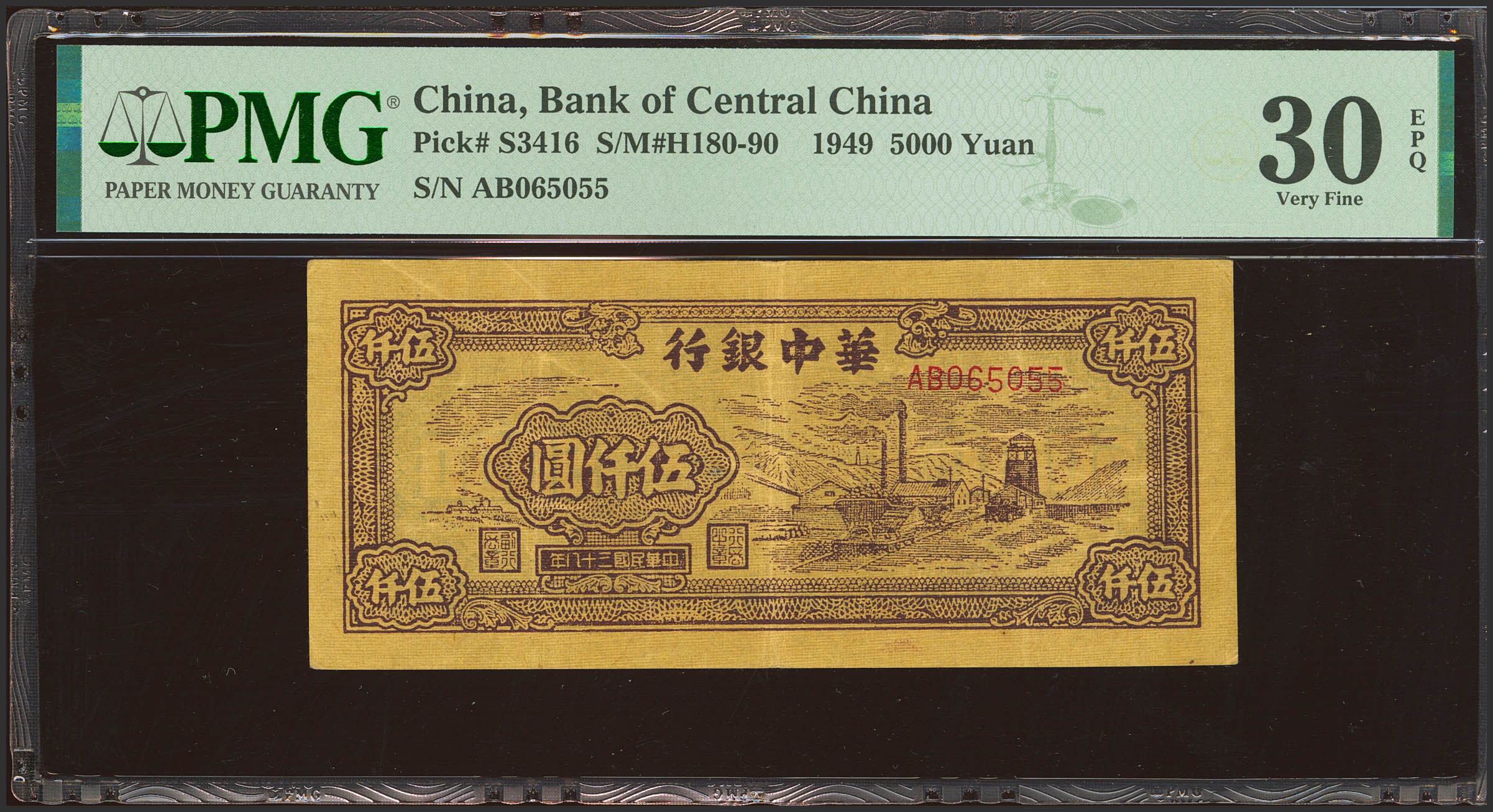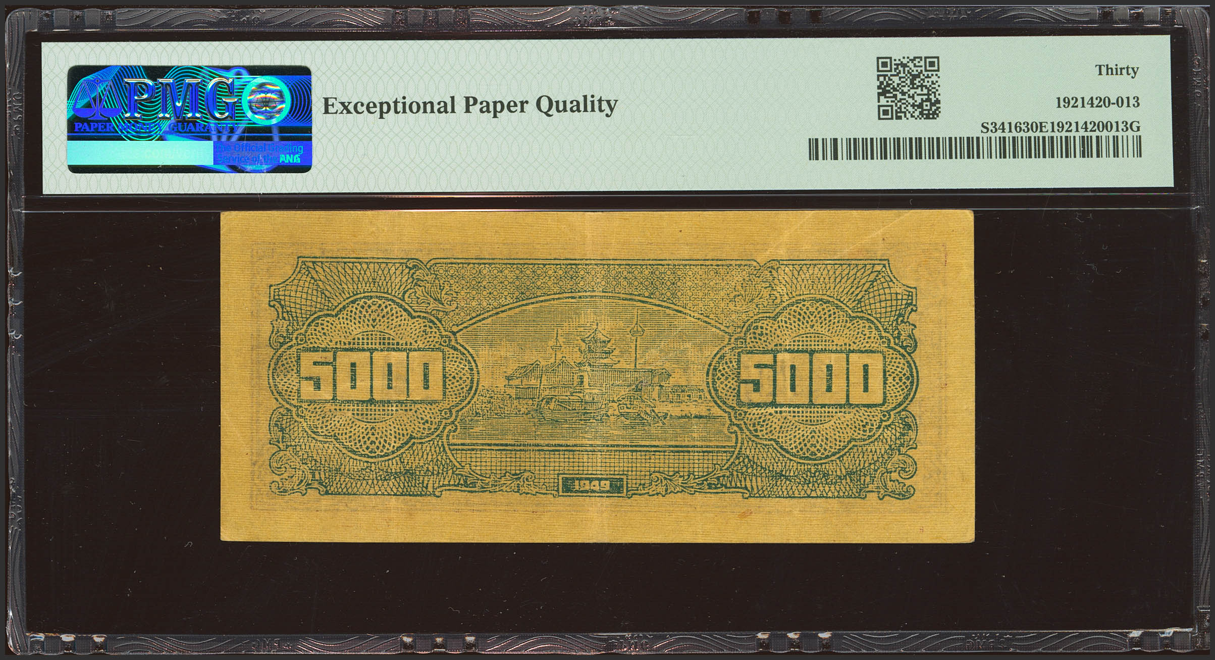 CHINA. 5000 Yuan. 1949. Central Bank of China. (Pick: S3416, SM: H180-90). PMG30EPQ.
