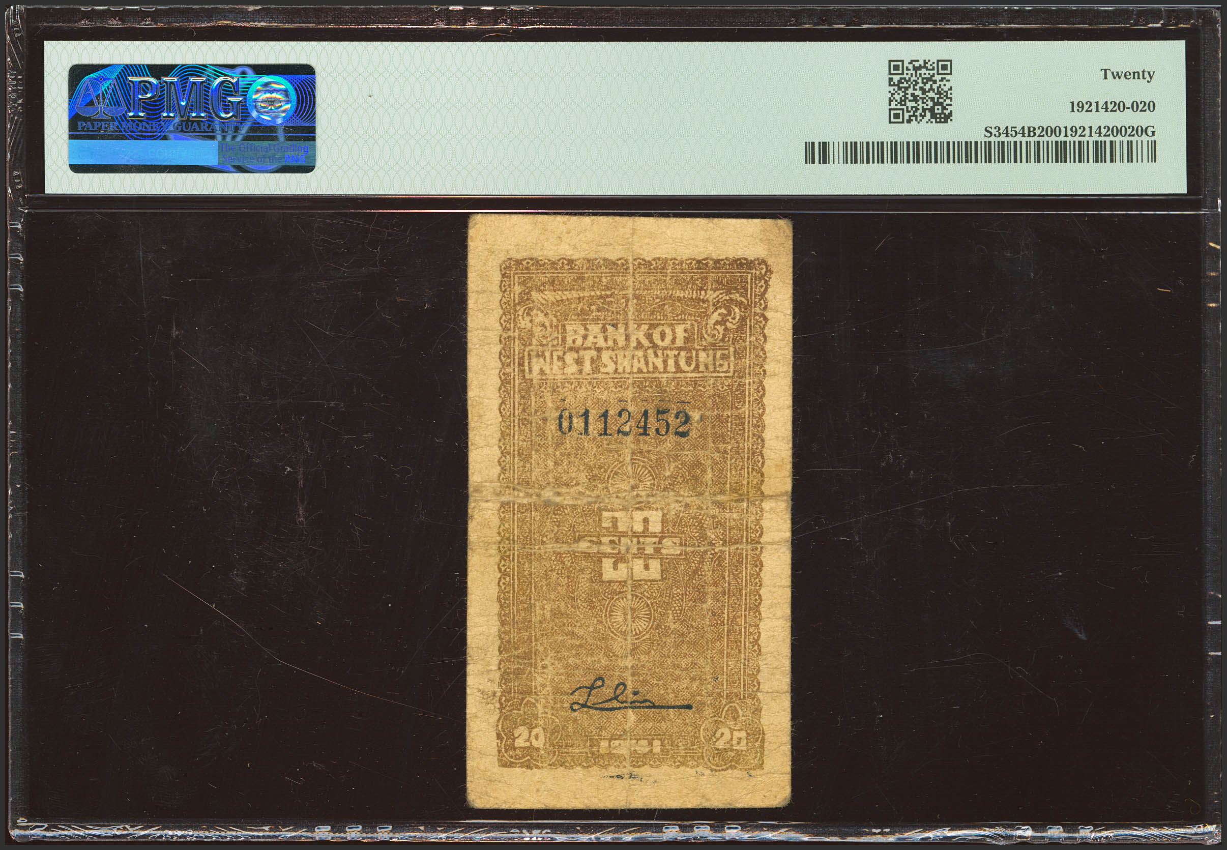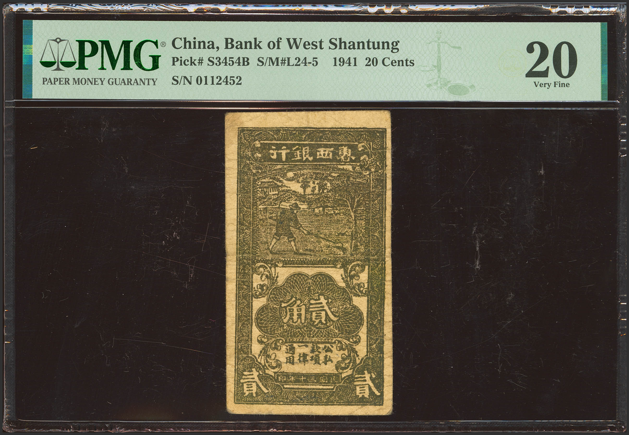 CHINA. 20 Cents. 1941. Bank of West Shantung. (Pick: S3454B, SM: L24-5). PMG20.