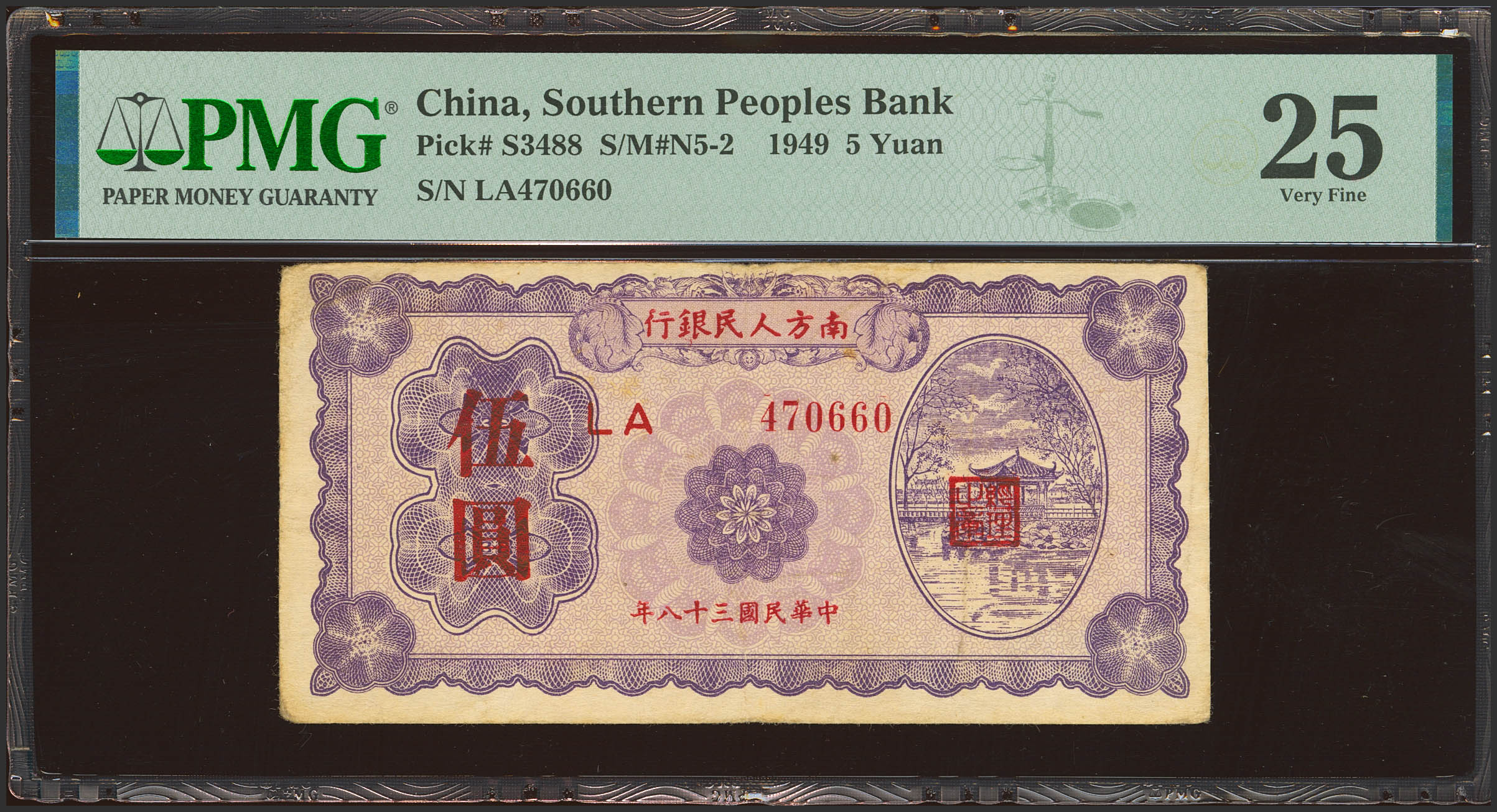 CHINA. 5 Yuan. 1949. Southern Peoples Bank. (Pick: S3488, SM: N5-2). PMG25.