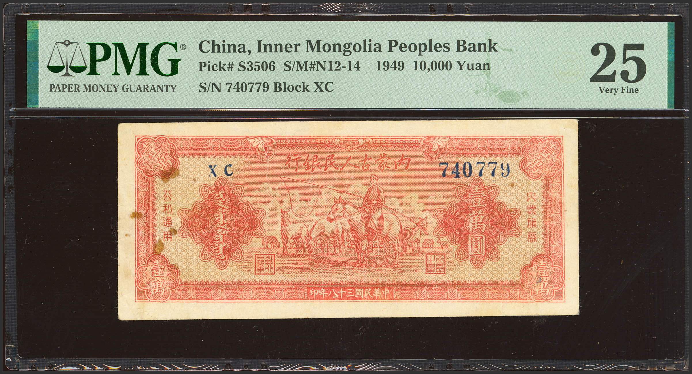 CHINA. 10000 Yuan. 1949. Inner Mongolia Peoples Bank. (Pick: S3506, SM: N12-14). PMG25 (rust).
