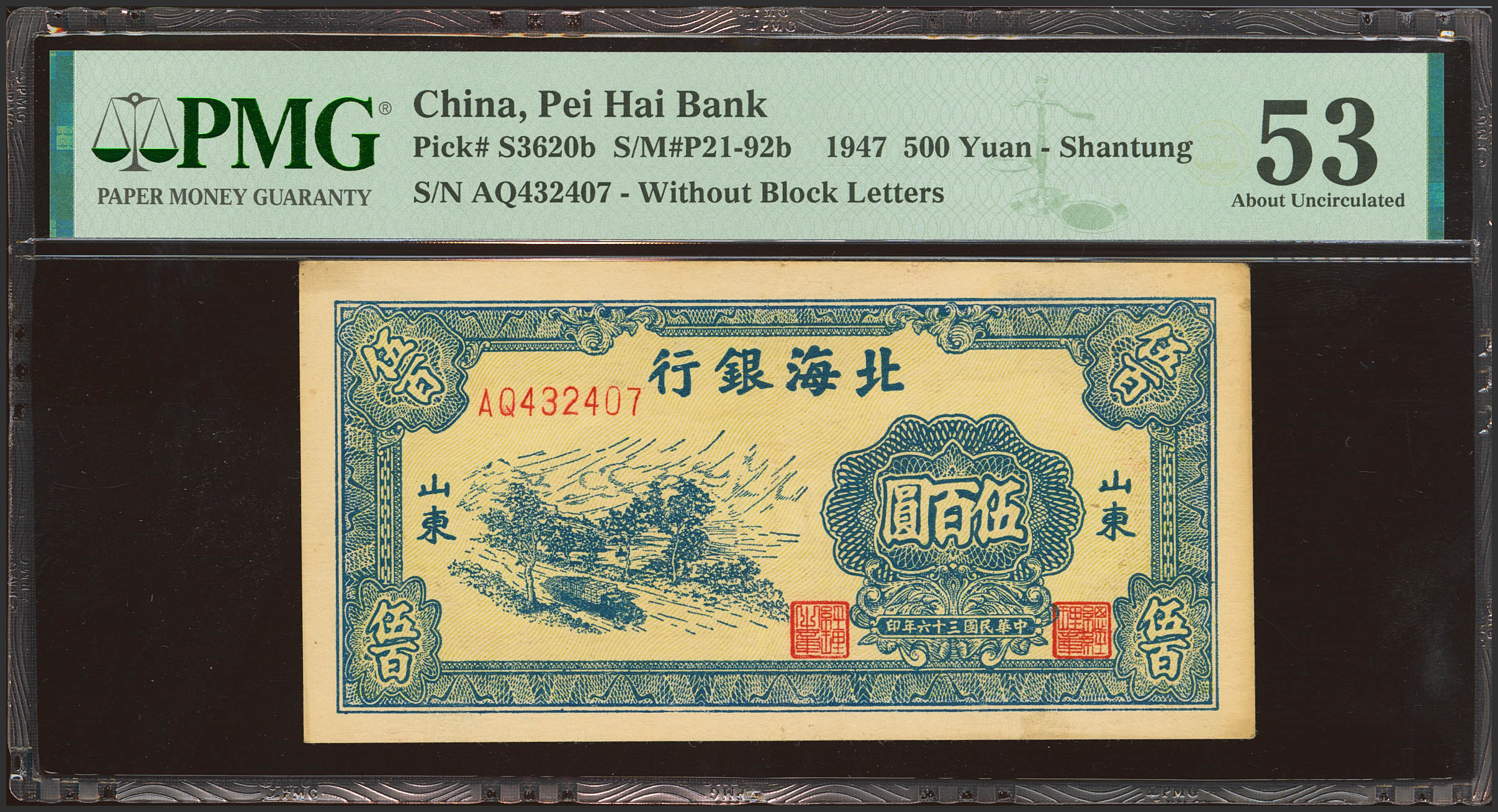 CHINA. 500 Yuan. 1947. Peilhai Bank. (Pick: S3620b, SM: P21-92b). PMG53.