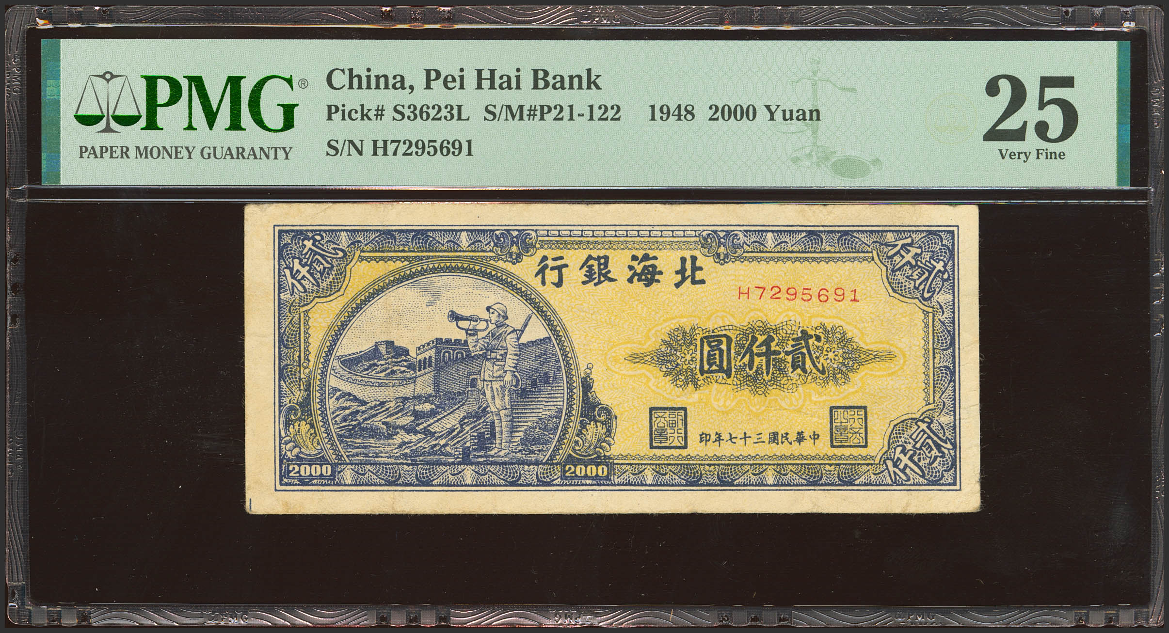 CHINA. 2000 Yuan. 1948. Peilhai Bank. (Pick: S3623L, SM: P21-122). PMG25.