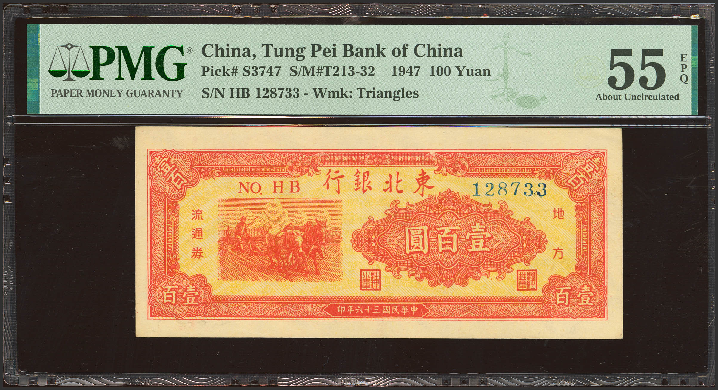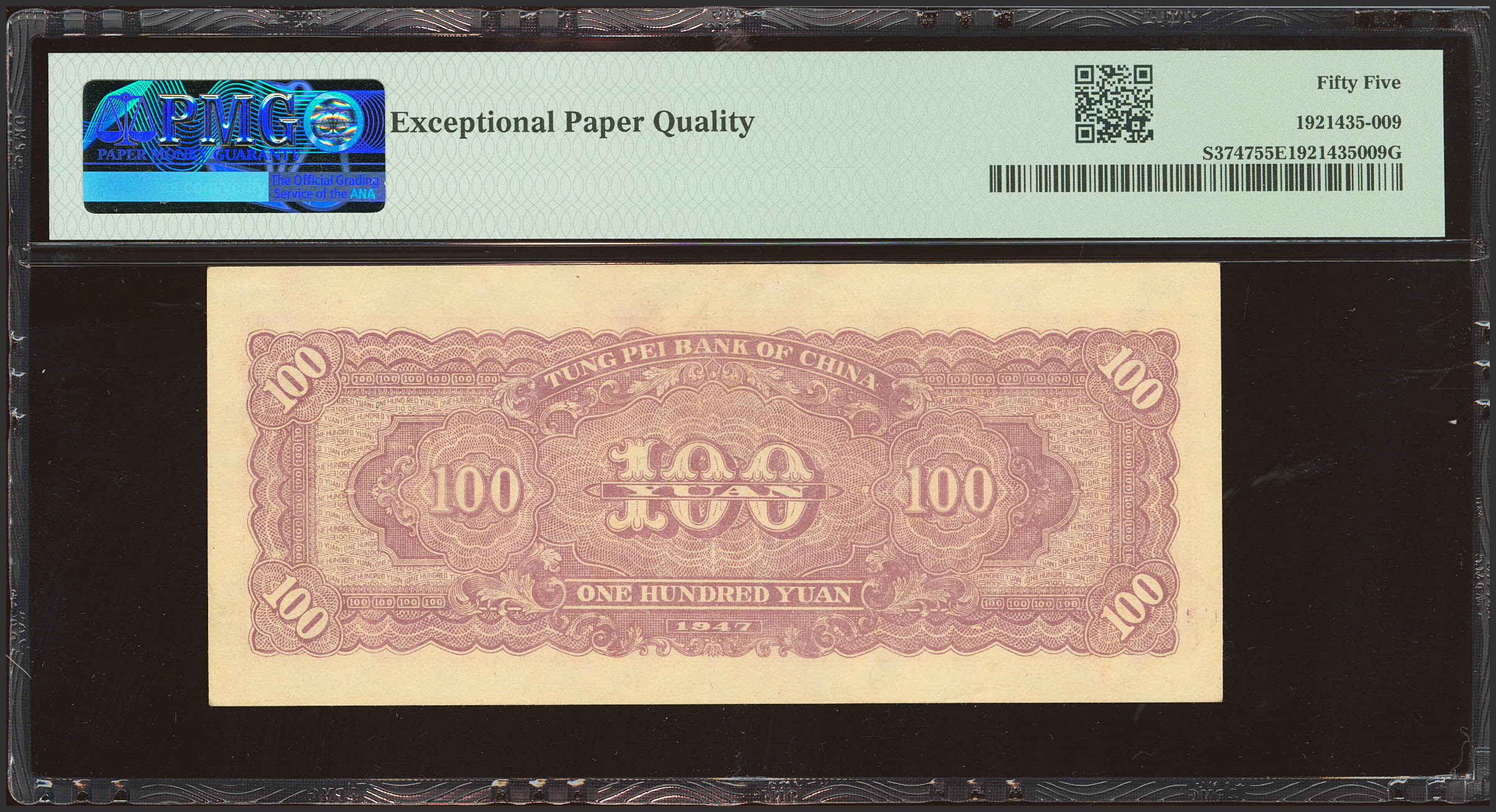 English CHINA. 100 Yuan. 1947. Tung Pei Bank of China. (Pick: S3750, SM: T213-32). PMG55EPQ.