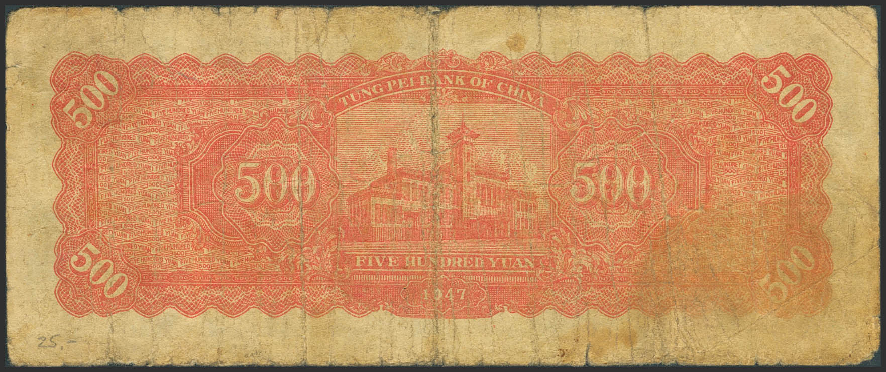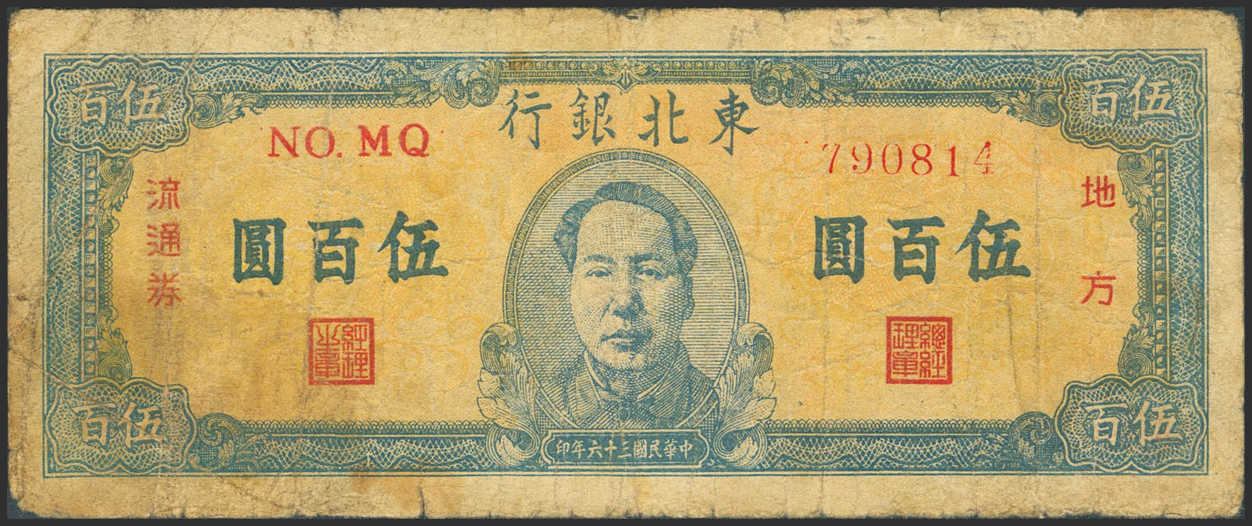 CHINA. 500 Yuan. 1947. Tung Pei Bank of China. (Pick: S3754). Fine.