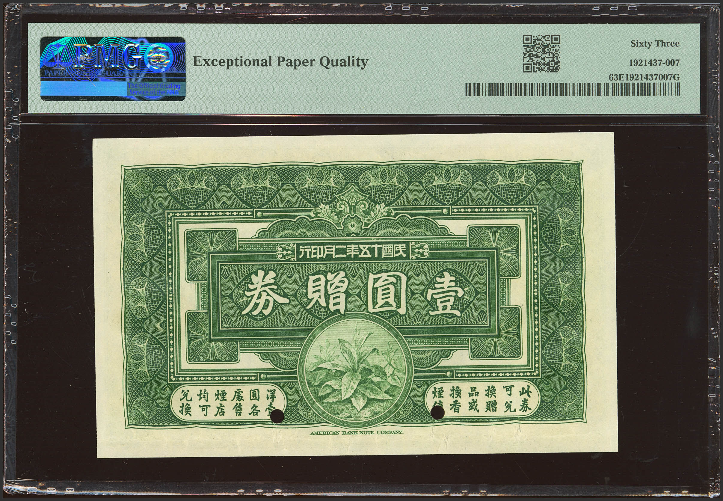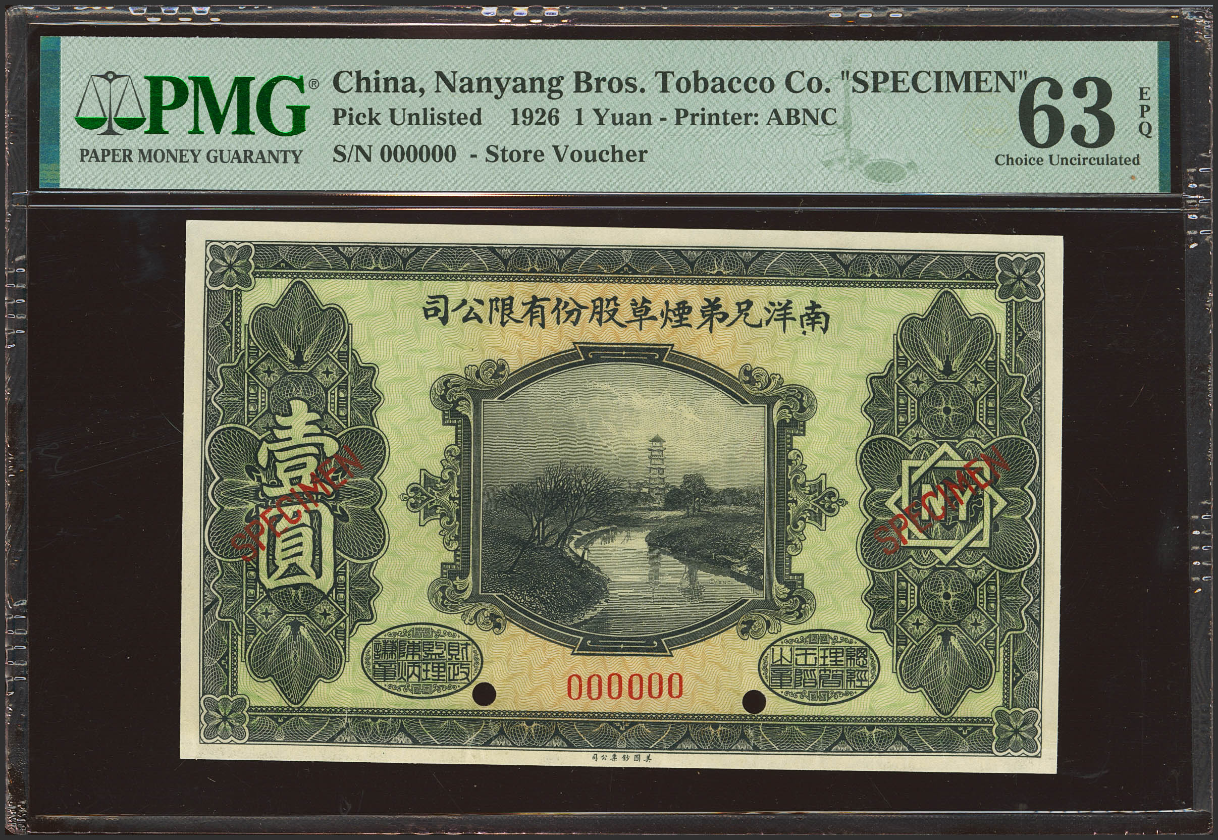 CHINA. 1 Dollar. 1926. Nanyang Bros. Tobacco Cº. Specimen. (Pick: Unlisted). PMG63EPQ.