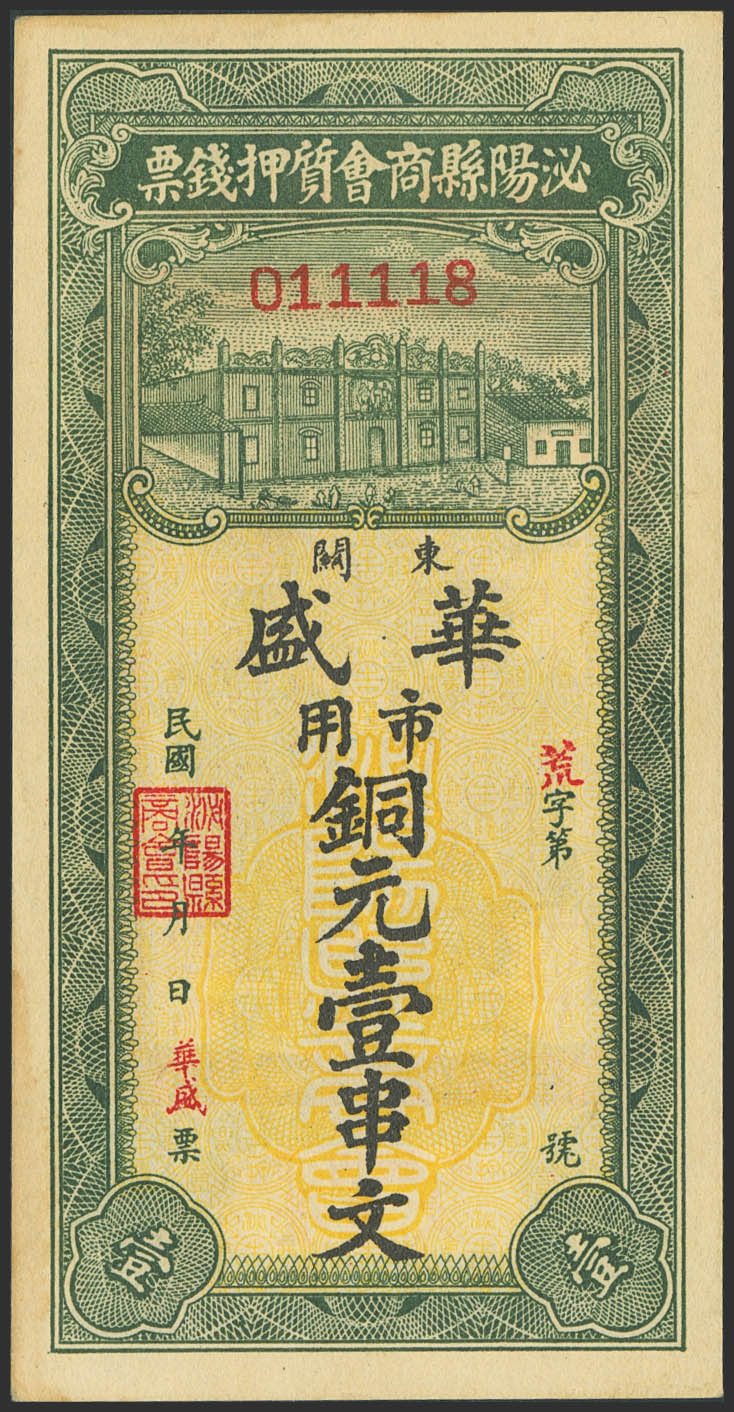 CHINA. 1 Yuan. Don't Date. Hua Sheng. Chamber of Commerce. Yangyang. (Pick: Unlisted). Uncirculated.