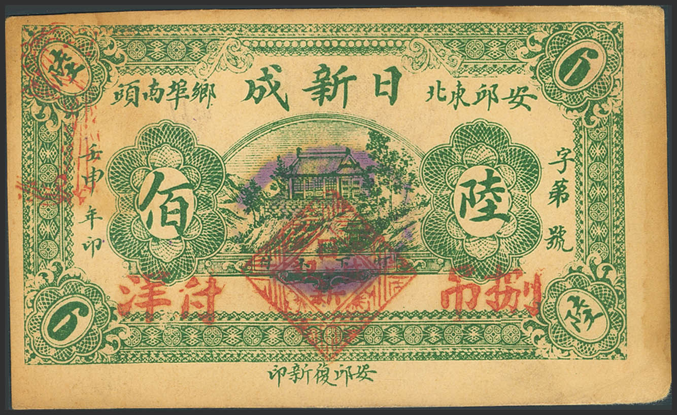 CHINA. 6 Tiao. 1923. Ri Xin Cheng. Anqiu. Shandong. Private Issue. (Pick: Unlisted). Almost Uncirculated.
