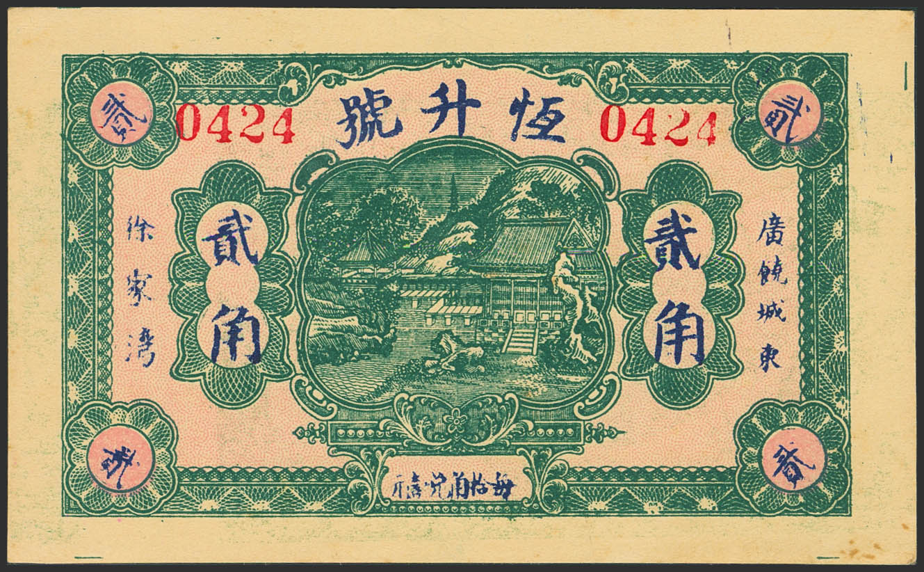 CHINA. 2 Chiao. Don't Date. Heng Sheng Hao. Shou Kuang. Private Issue. (Pick: Unlisted). Less than Uncirculated.