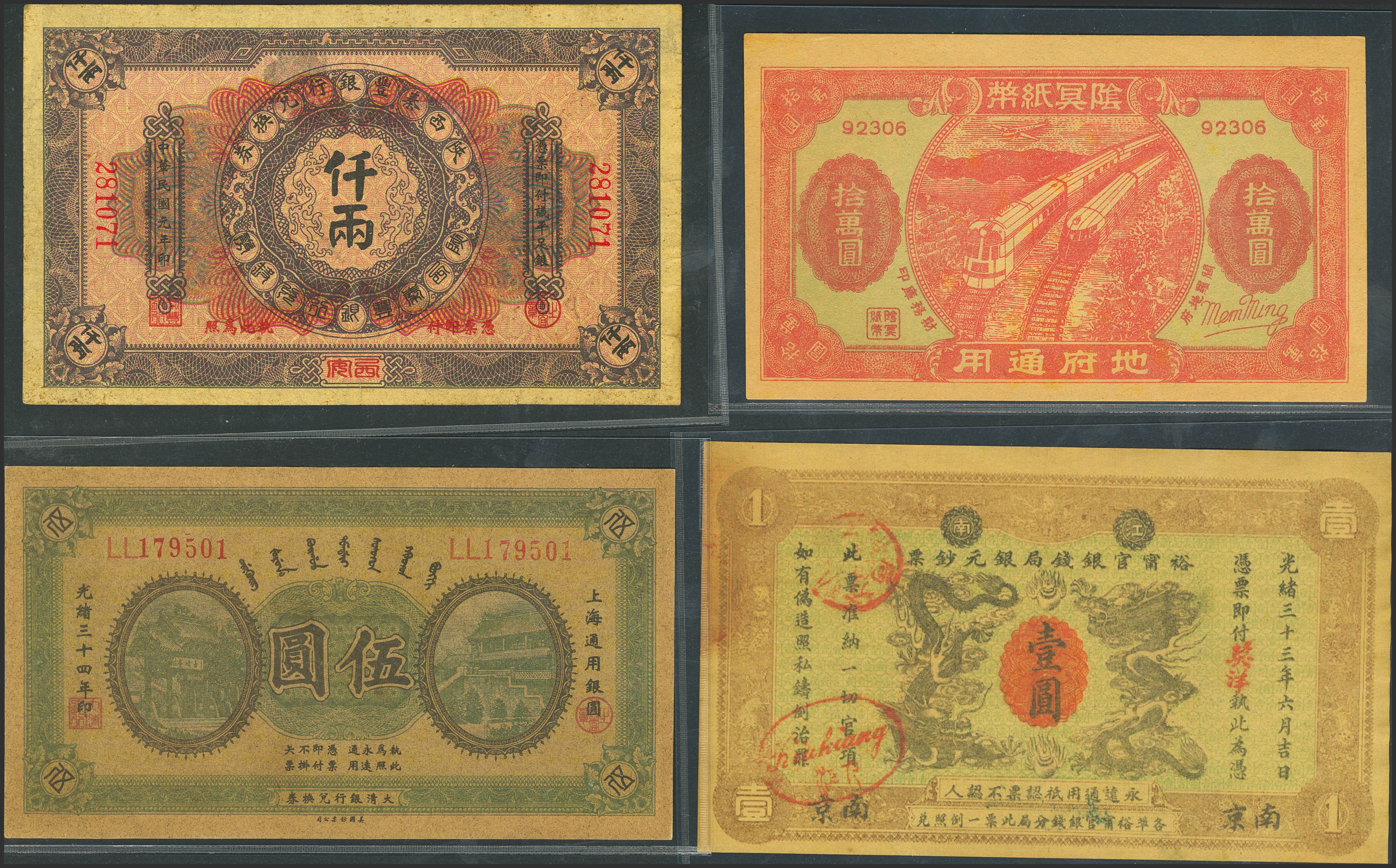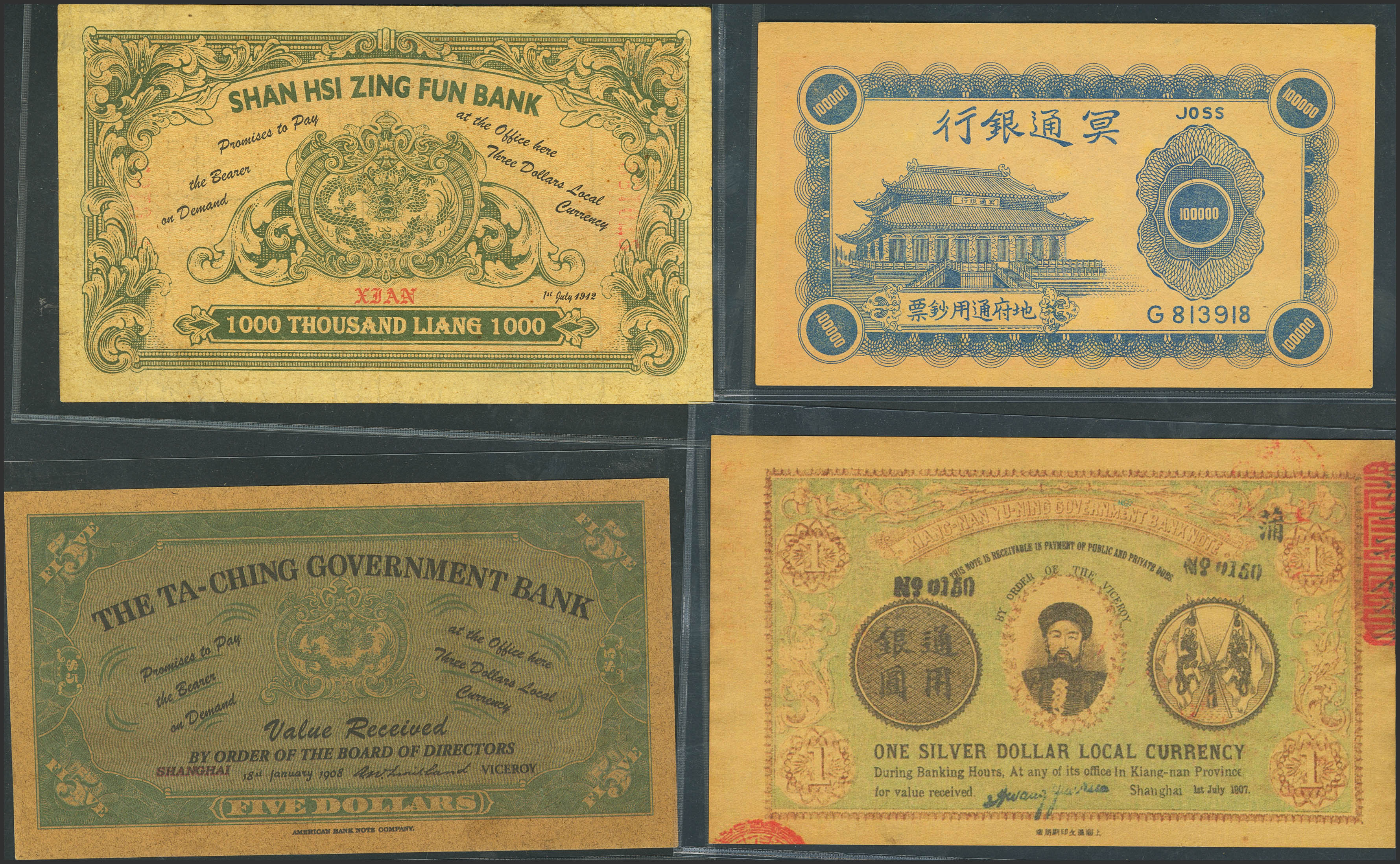 CHINA. Lot of 4 notes. Don't Date. Private issues. Forgeries. (Pick: Unlisted). Less than Uncirculated to Very Fine.
