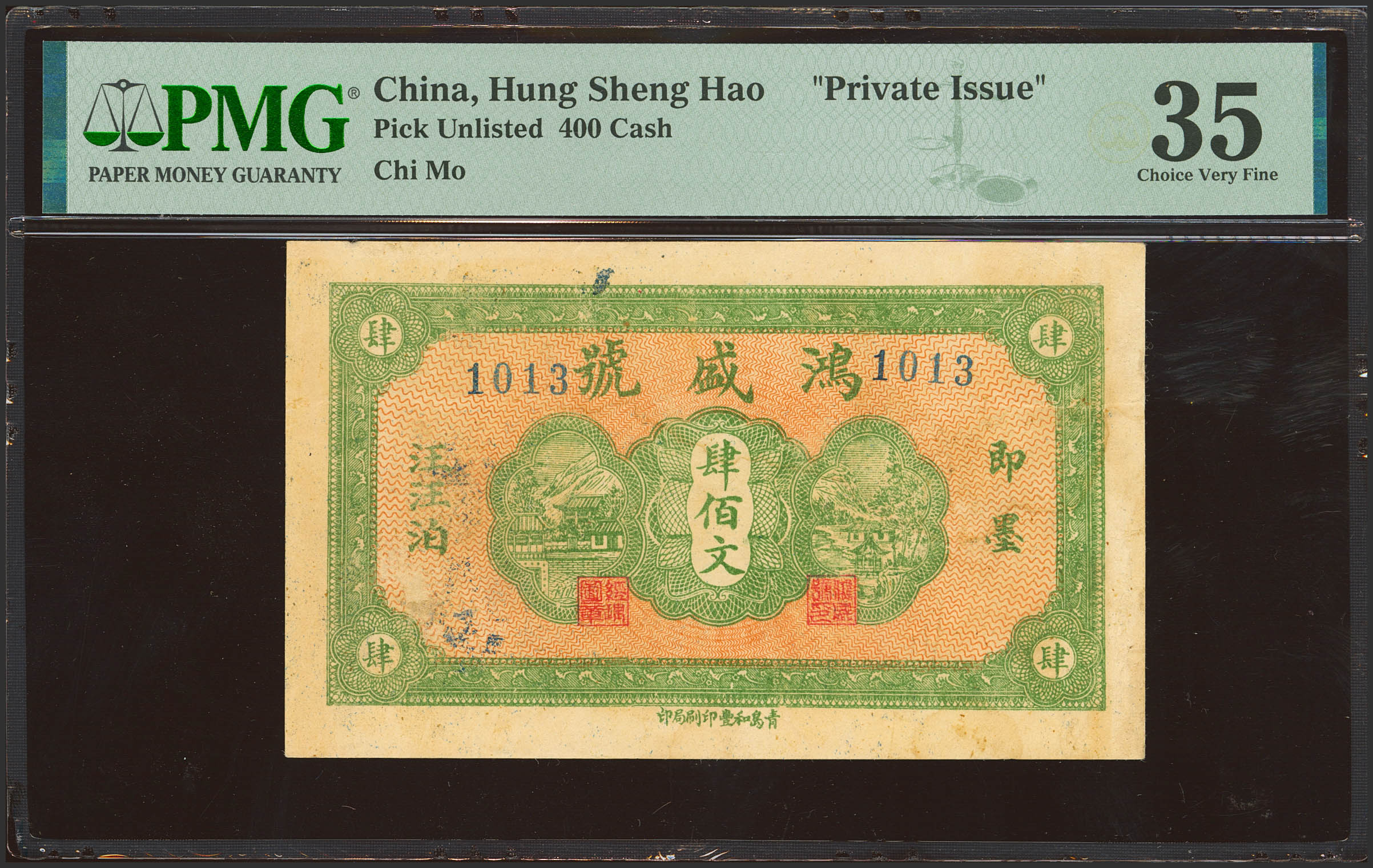 CHINA. 400 Cash. Don't Date. Hung Sheng Hao. Chi Mo. Private Issue. (Pick: Unlisted). PMG35 (stains, paper pulls).