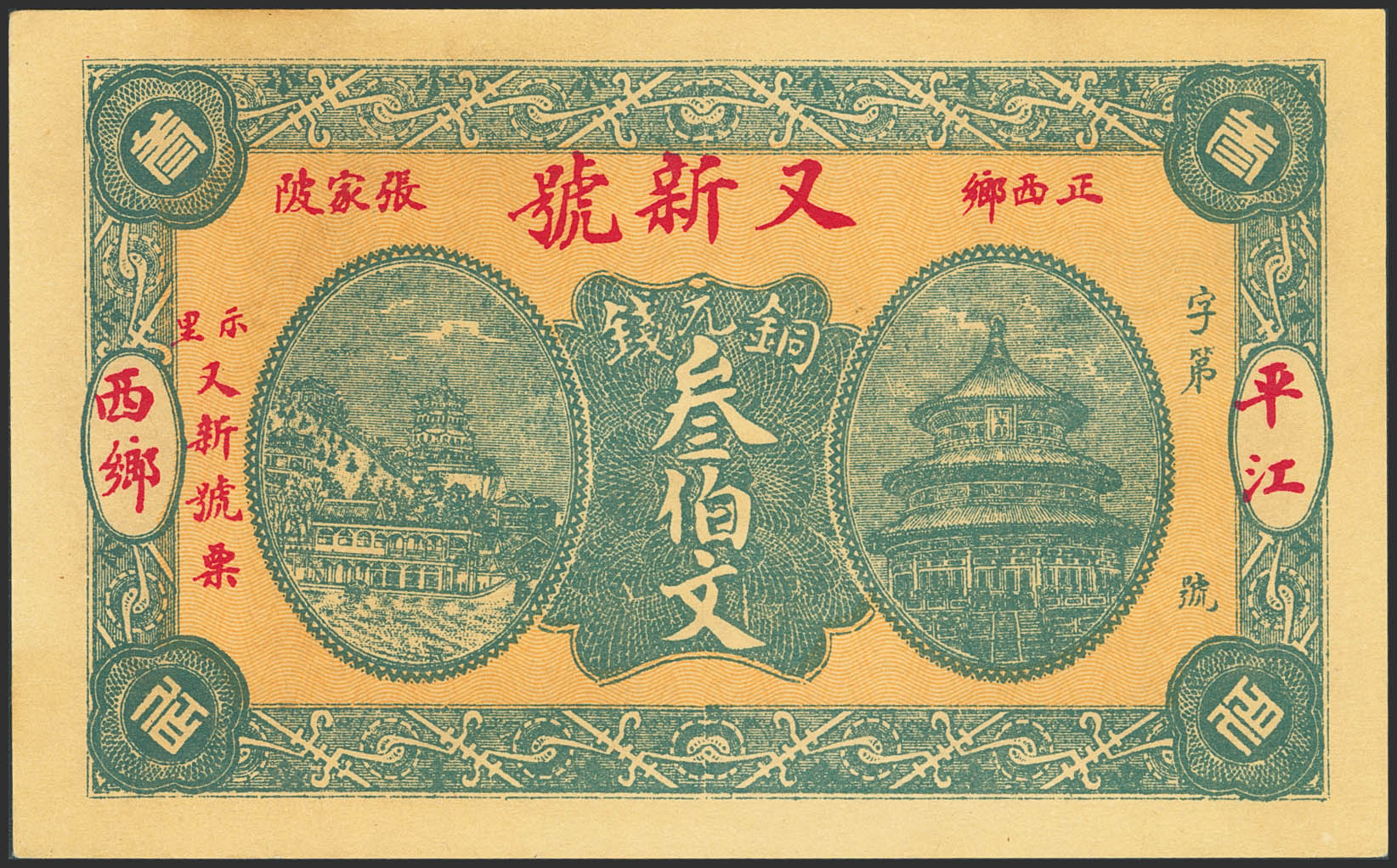 English CHINA. 100 Wen. Don't Date. Hu Bei. You Xin Hao. Private Issue. (Pick: Unlisted). Less than Uncirculated.