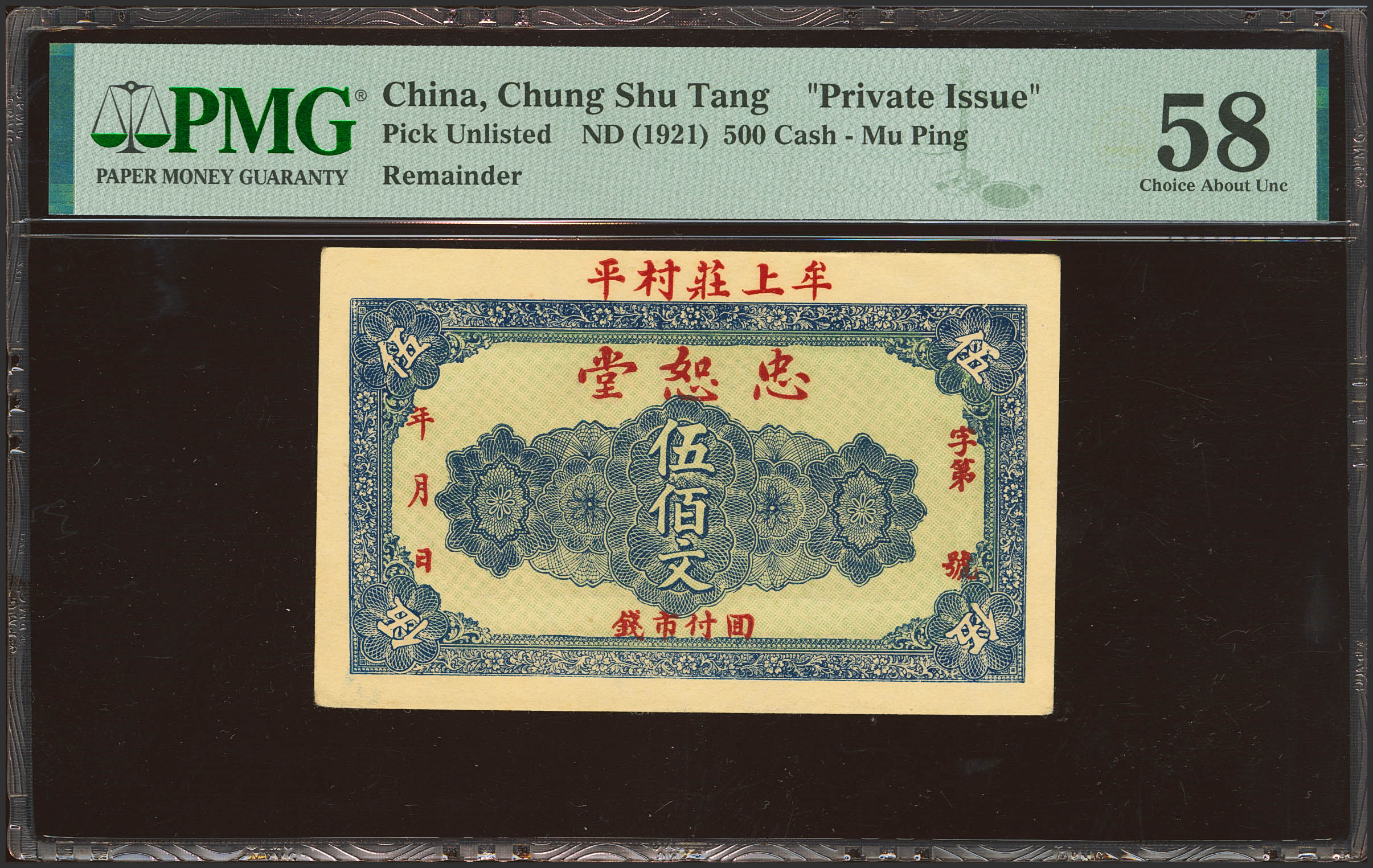 CHINA. 500 Wen. Don't Date. Zhong Zhi Tang. Private Issue. (Pick: Unlisted). PMG58.