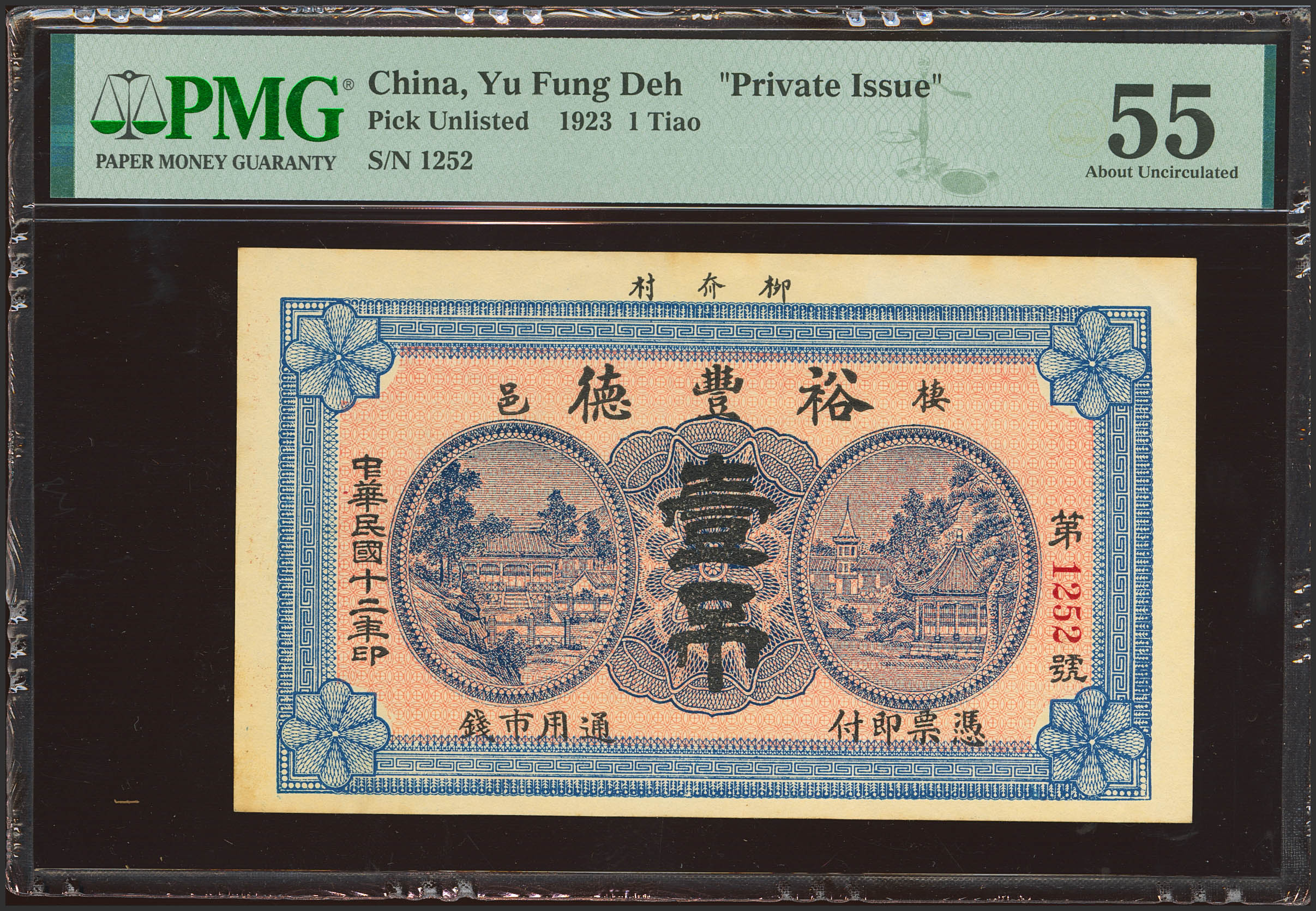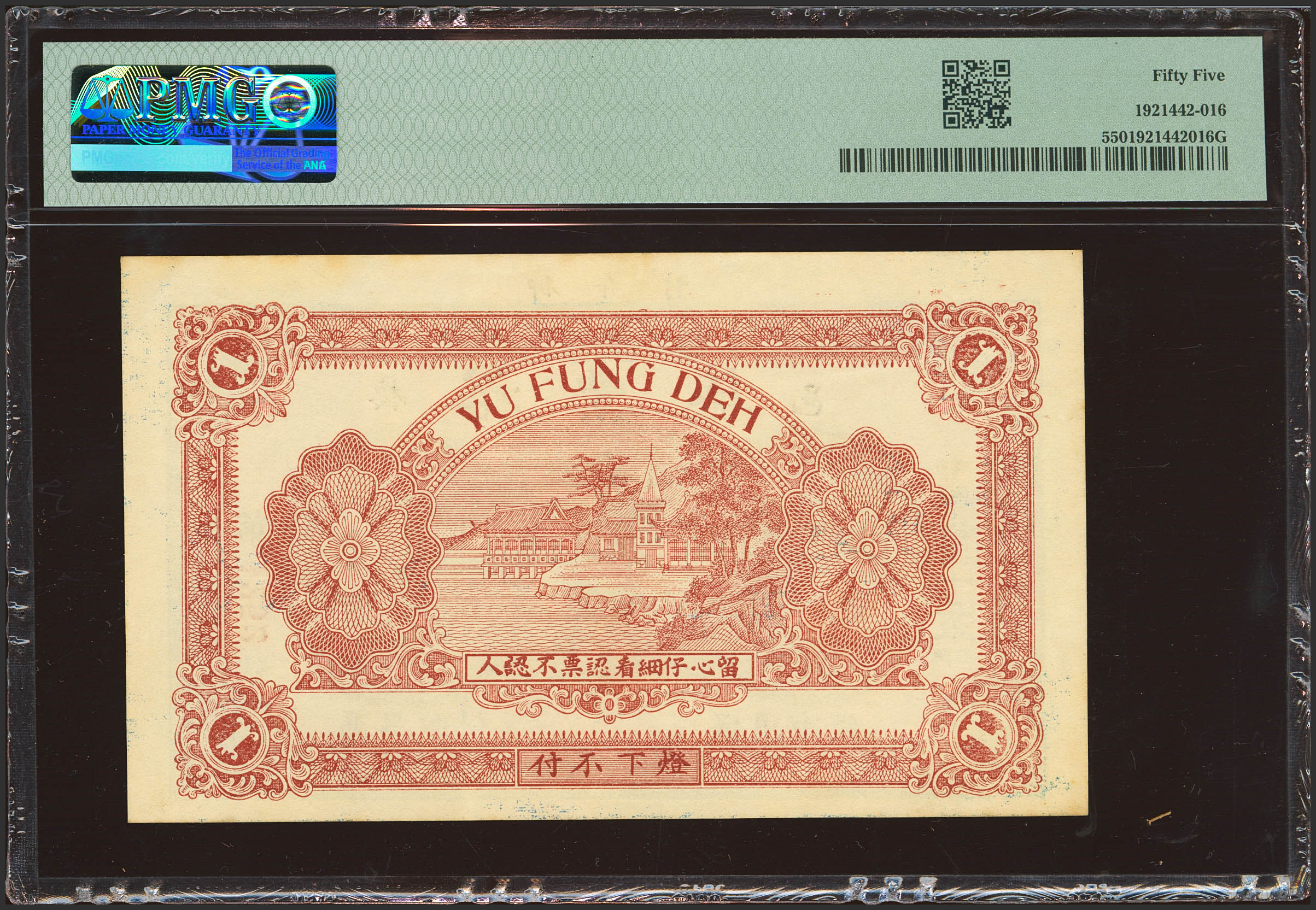 CHINA. 1 Yuan. 1923. Yu Fung Seh. Private Issue. (Pick: Unlisted). PMG55.