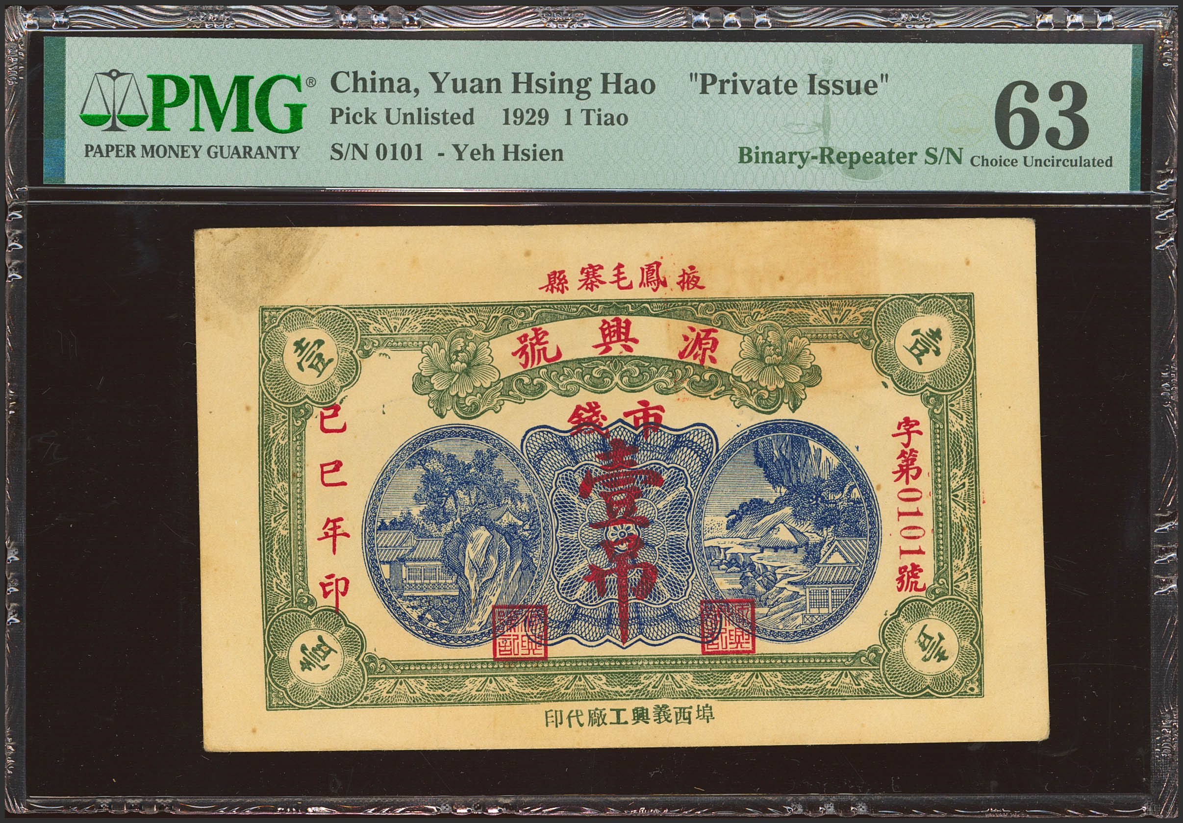 CHINA. 1000 Cash. 1929. Yuan Xing House. Private Issue. (Pick: Unlisted). Dirty. PMG63 (stains).