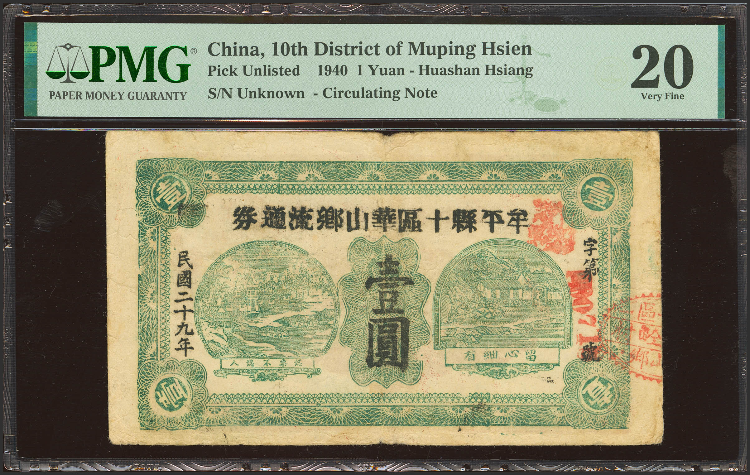 CHINA. 1 Yuan. 1940. Hua Sham. Muping. Shandong. (Pick: Unlisted). PMG20.