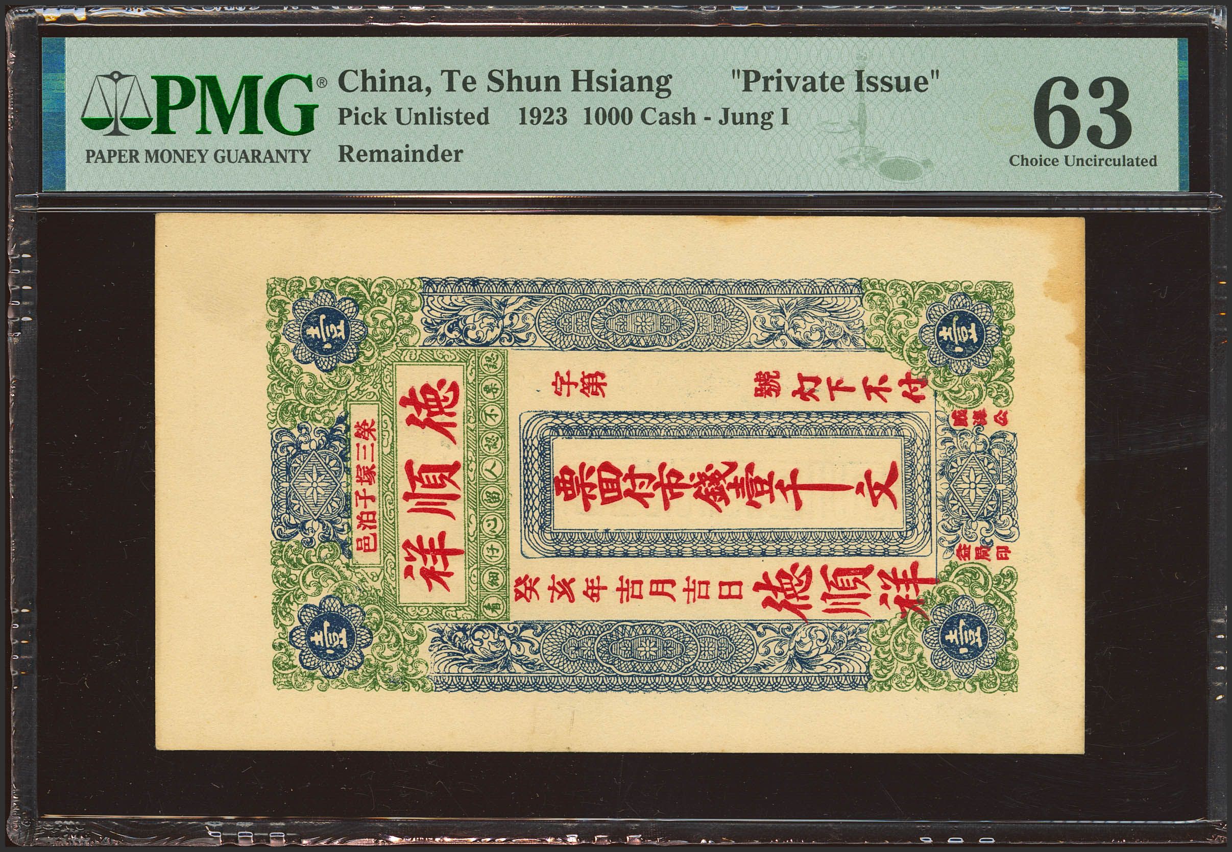 CHINA. 1000 Cash. Don't Date. By Shun Xiang. Private Issue. (Pick: Unlisted). PMG63 (corner stain).