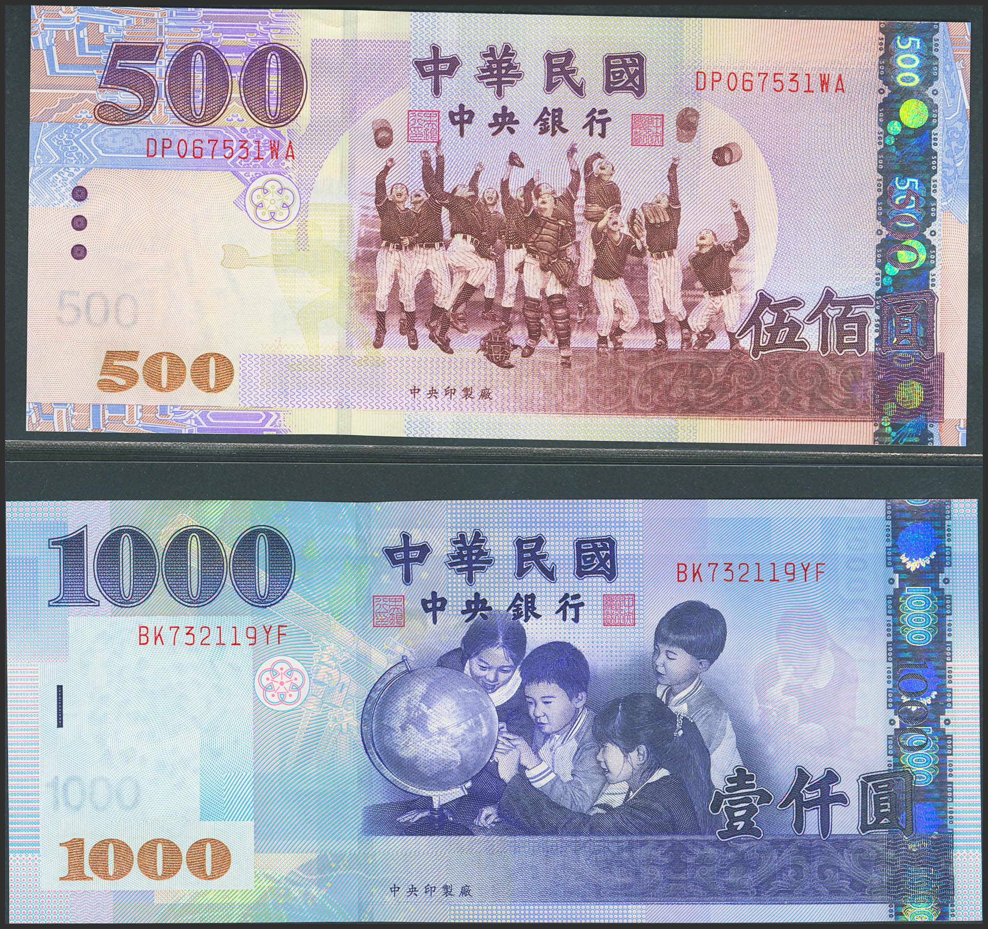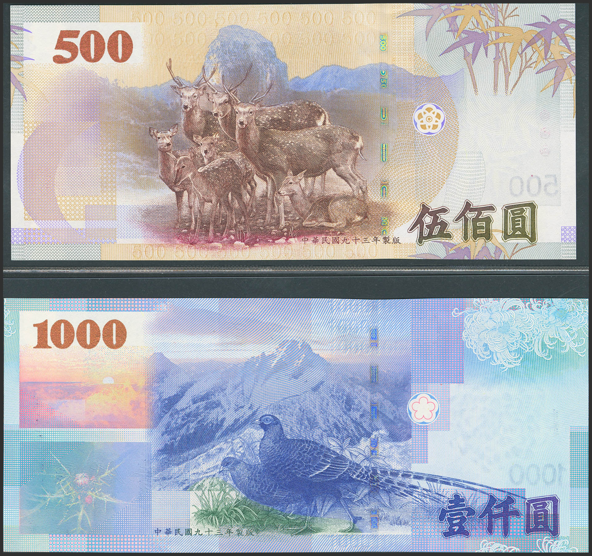 TAIWAN. Lot of 2 notes of 500 and 1000 Yuan. 2004. Bank of Taiwan. Complete Set. (Pick: 1996 and 1997). Uncirculated.