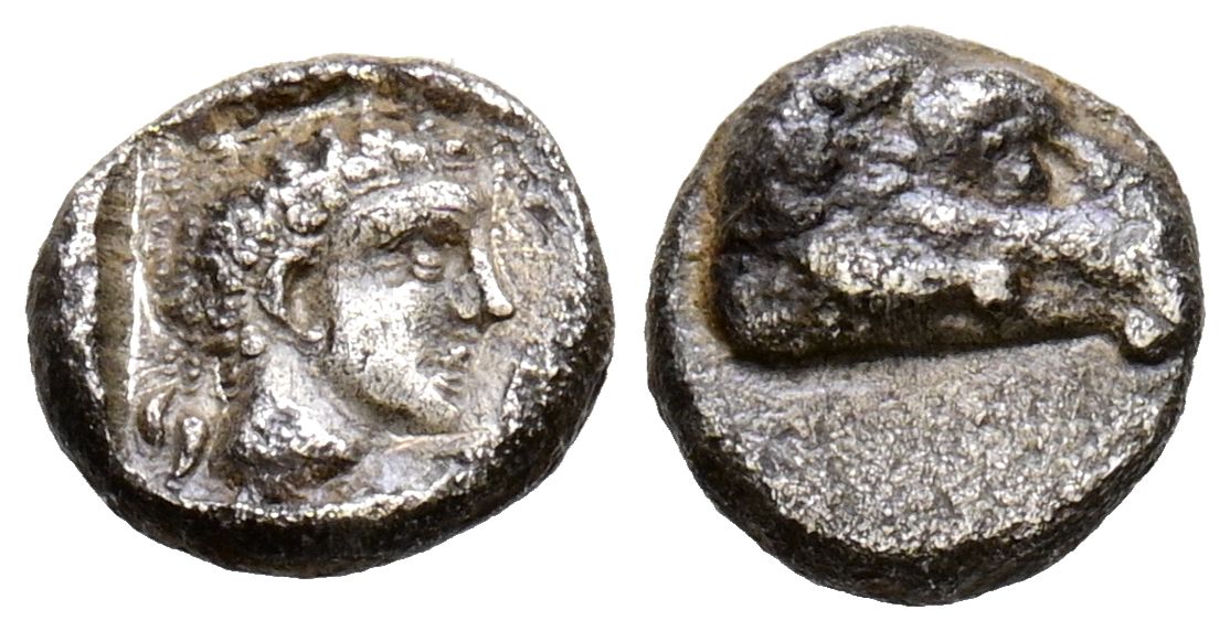 CARIA, Kasolaba. Hemiobolus. (Ar. 0.51g/7mm). 4th century Fine (SNG Keckman 866-902; Konuk, Kasolaba 5). Anv: Male head to the right. Rev: Ram's head to right. Very Fine.