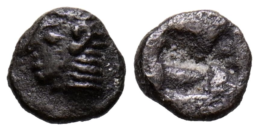 IONIA, Kolophon. Tretartemorion. (Ar. 0.16g/5mm). 530-500 Fine (SNG Kayhan 343-7; SNG von Aulock 1810). Anv: Archaic head of Apollo on the left Rev: Quadripartite incused square punch. Very Fine.