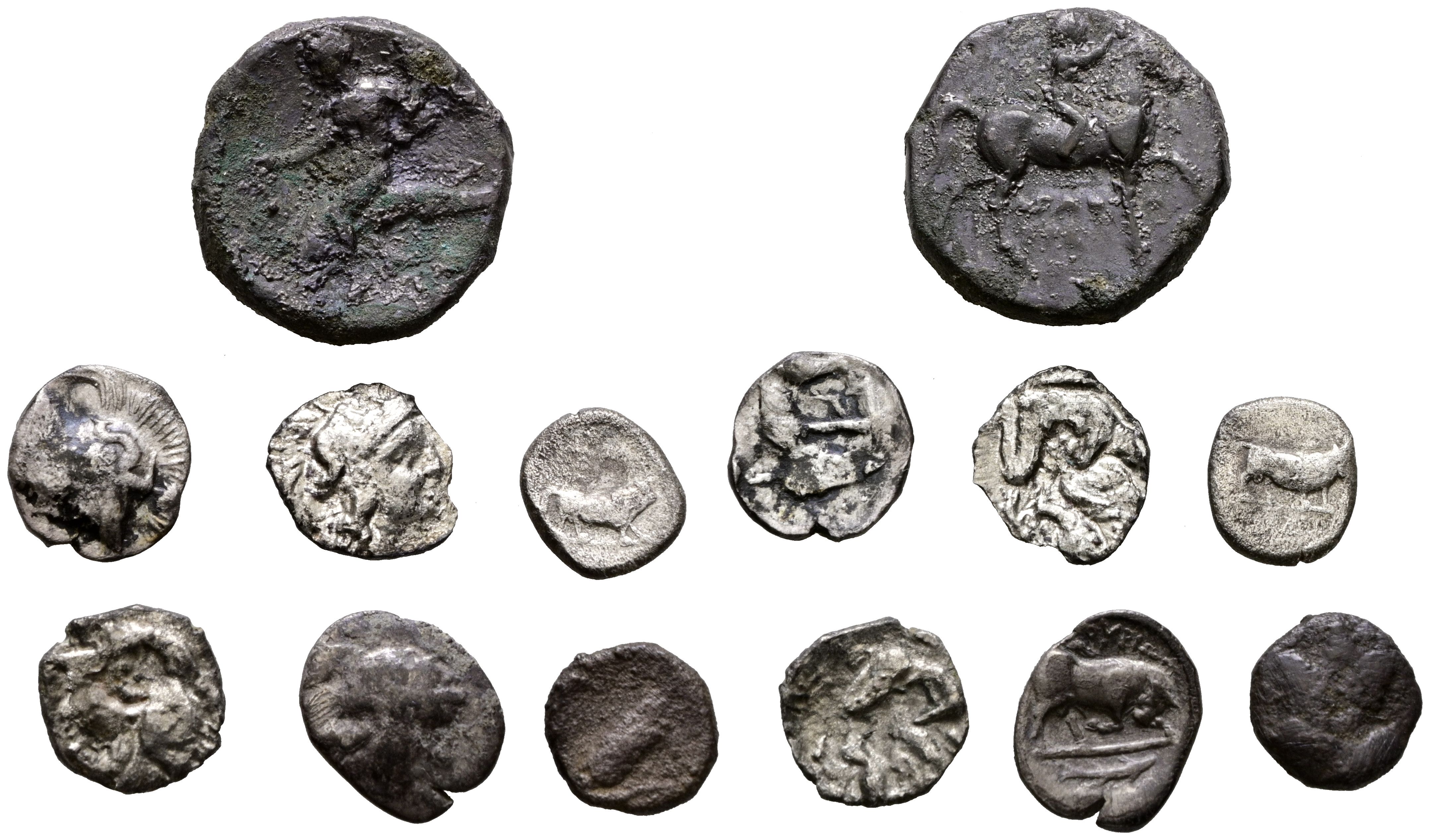 Very interesting set of 6 dioboles from Lucania of different types and 1 stater from Tarentum. WORTH EXAMINING.