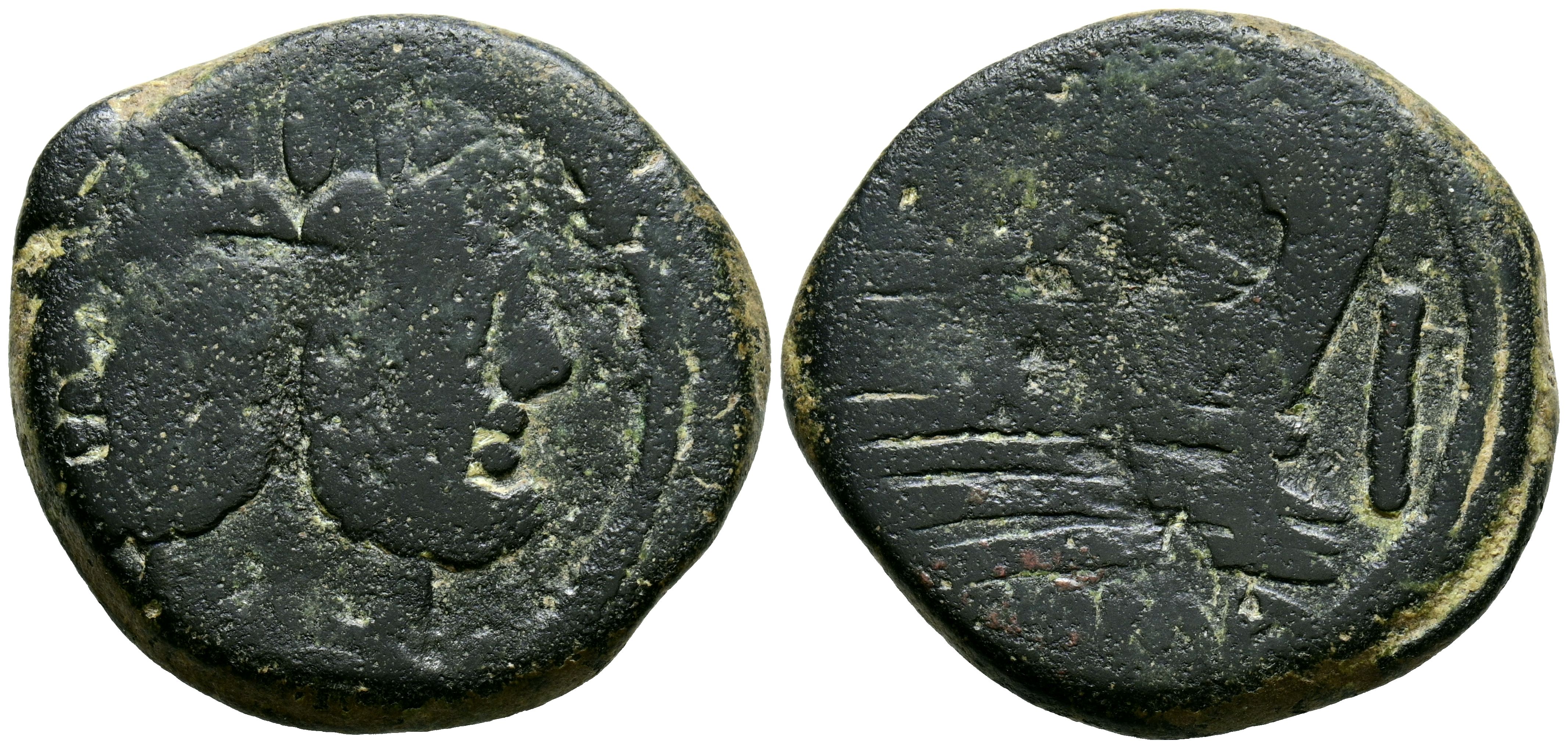ANONYMOUS MININGS. As. (Ae. 17.82g/30mm). 211 Fine Rome. (Crawford 61/2). Obv: Laureate head of Janus with two faces, above I. Reverse: Prow to the right, in front I, below: ROMA. Good Fine.
