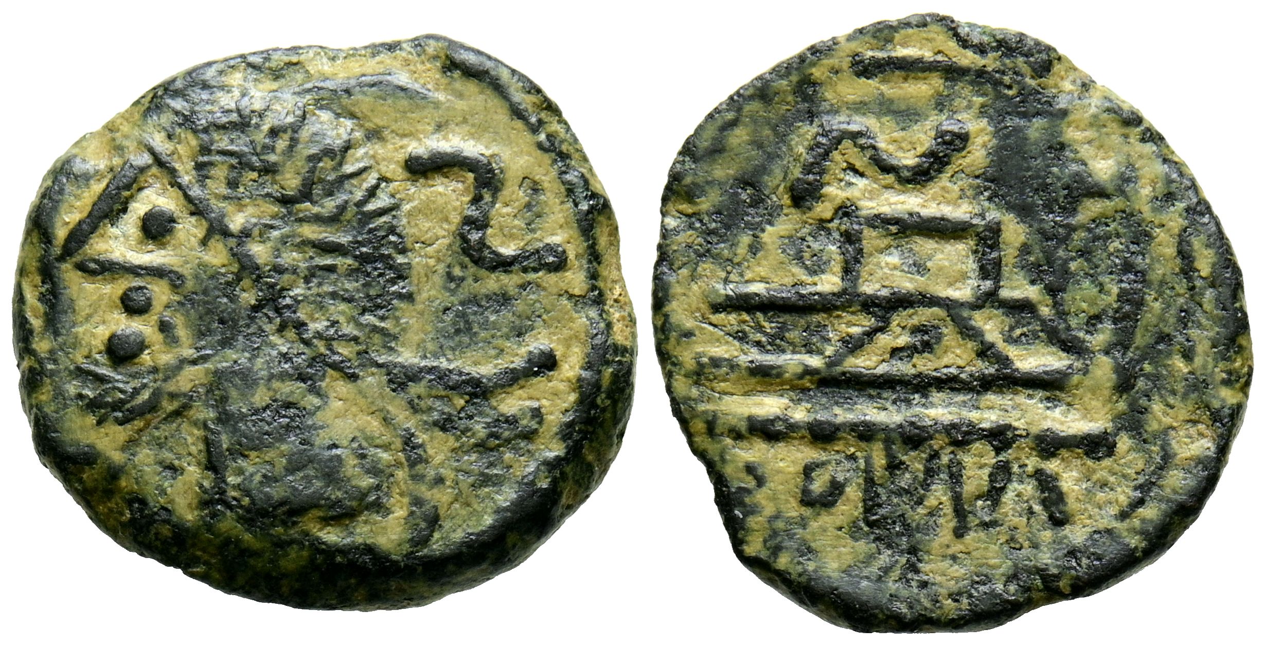 ANONYMOUS MINCINGS. Imitation Spanish semis. (Ae. 3.31g/17mm). 211 Fine Uncertain. Obv: Laureate head of Saturn left; behind retrograde S. Reverse: Prow left, above recumbent S, below ROMA. VF.