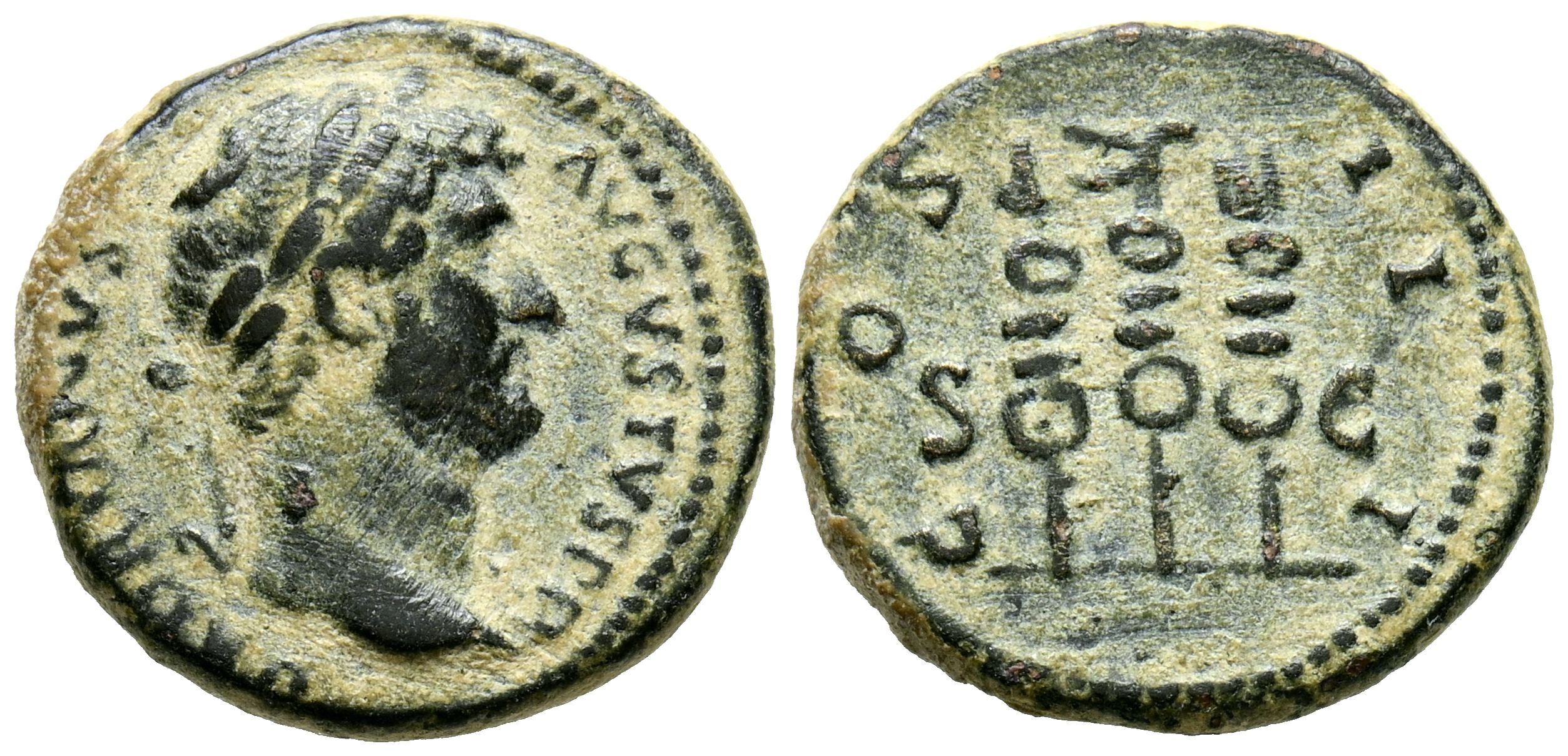 HADRIAN. Quadrant. (Ae. 3.59g/17mm). 125-128 AD Rome. (RIC 689). Obv: Laureate head of Hadrian right, around legend: HADRIANVS AVGVSTVS. Rev: Imperial eagle on three banners, in exergue: Uncirculated, around legend: COS III. Very Fine.