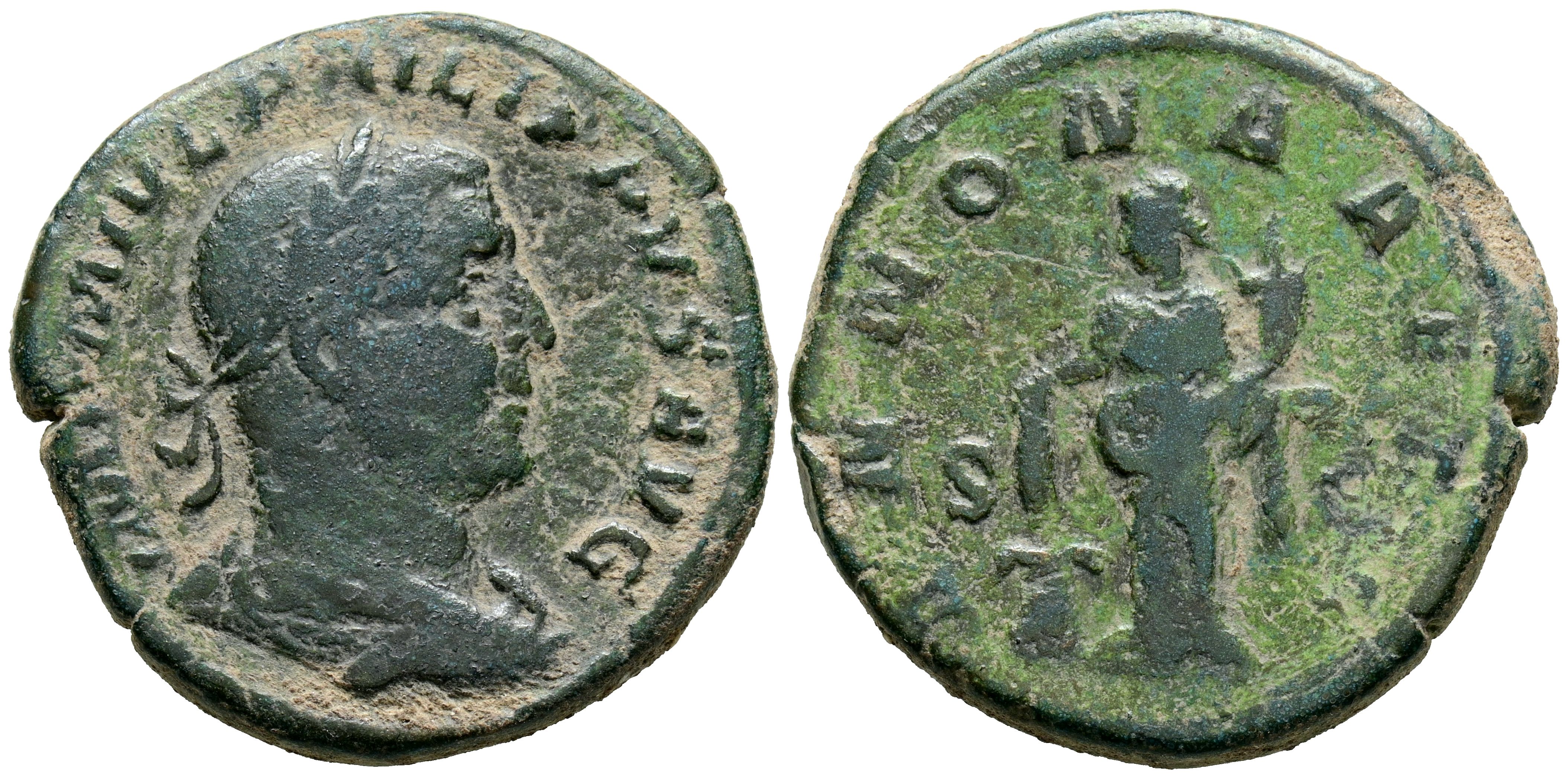 PHILIPPUS I. Sestertius. (Ae. 15.36g/28mm). 245-246 AD Rome. (RIC 168a). Anv: Laureate and draped bust of Philip I right, around legend: IMP M IVL PHILIPPVS AVG. Rev: Annona standing left carrying cornucopia and ears of wheat on altar, between: Uncirculated, around legend: ANNONA AVGG. Very Fine-.
