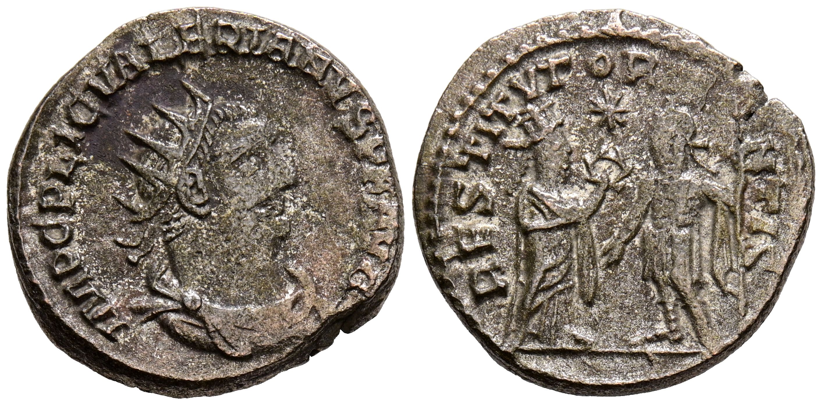 VALERIAN I. Antoninianus. (Ar. 3.57g/19mm). 255-256 AD Samosata. (RIC 287). Anv: Radiate, draped and cuirassed bust of Valerian I right, around legend: IMP C LIC VALERIANVS PF AVG. Rev: Female figure standing on the right crowning Valerian I standing on the left carrying a sceptre, around legend: RESTITVT ORIENTIS. VF-.