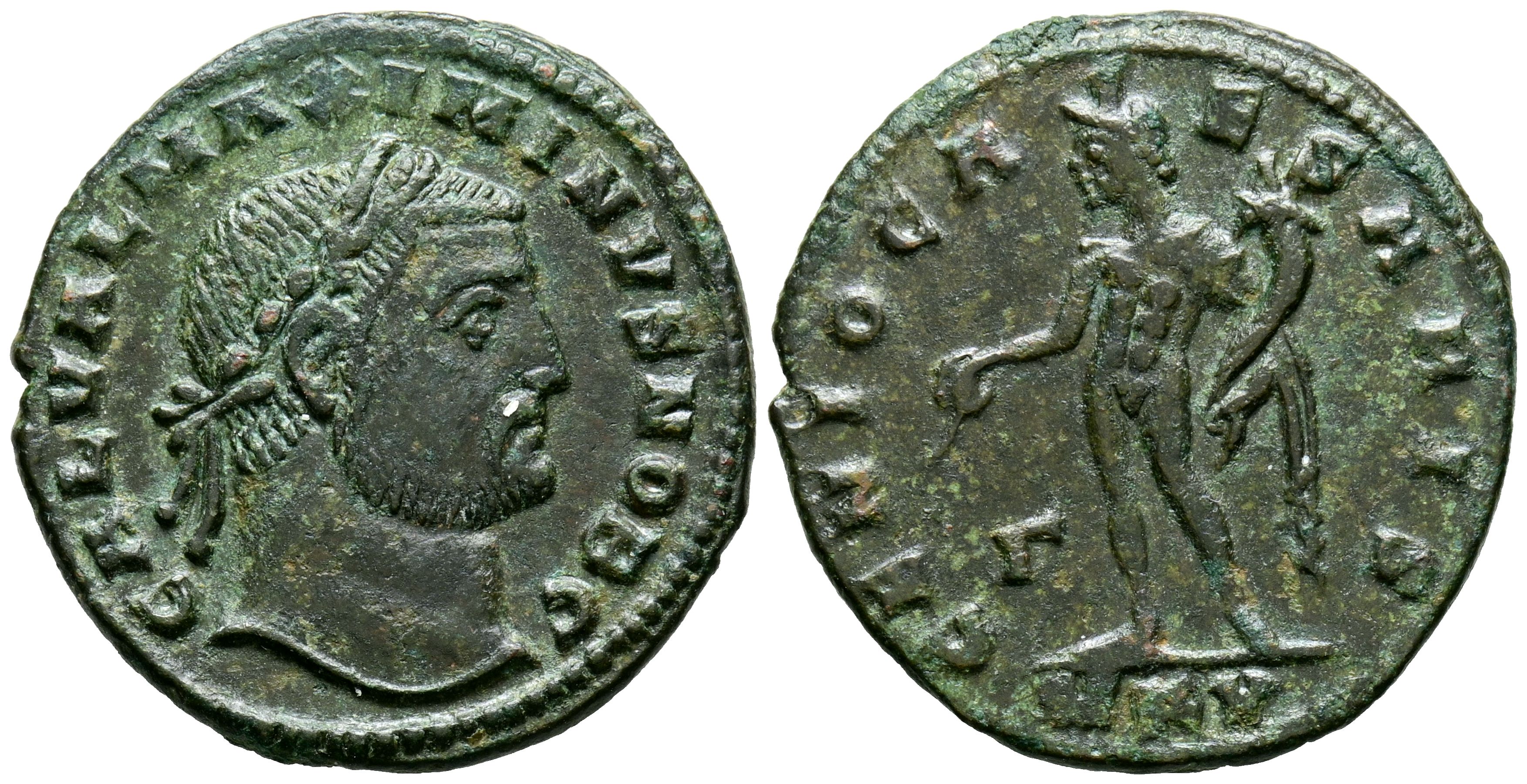 MAXIMINUS II. Follis. (Ae. 6.10g/25mm). 311-312 AD Cyzicus. (RIC 55). Anv: Laureate bust of Maximinus II facing right, around legend: GAL VAL MAXIMINVS NOFine. Rev: Genius standing left carrying patera and cornucopia, in field r, in exergue: MKV, around legend: GENIO CAESARIS. Very Fine.