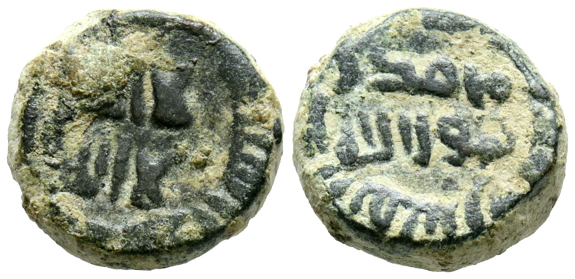 DEPENDENT EMIRATE OF CÓRDOBA, PERIOD OF GOVERNORS. Anonymous. Felus. (Ar. 2.67g/12mm). S/D. al-Andalus / الاندلس. (Vives 41; Frochoso XVIII-e). Anv: لاالله/ لااله ا. Rev: سواالله / محمدر. Partially legible border in both areas:..االفلس… Good Very Fine. Scarce.