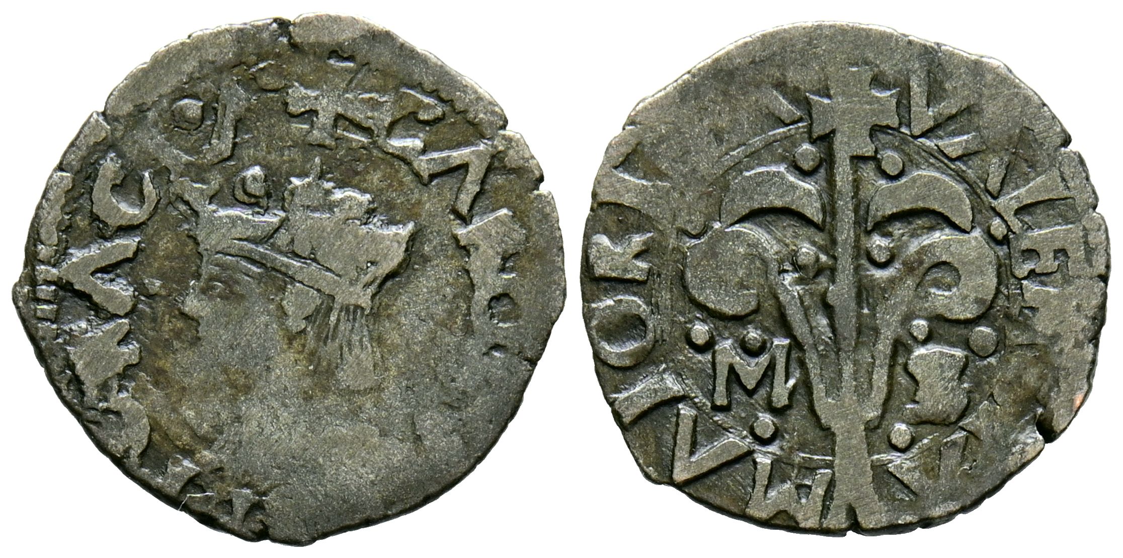 CHARLES I (1516-1556). Money. (Ae. 0.83g/15mm). S/D. Valencia. (Cal-2019-19). MS (Miguel Sanchis 1522-1539) on reverse. VF. Scarce.
