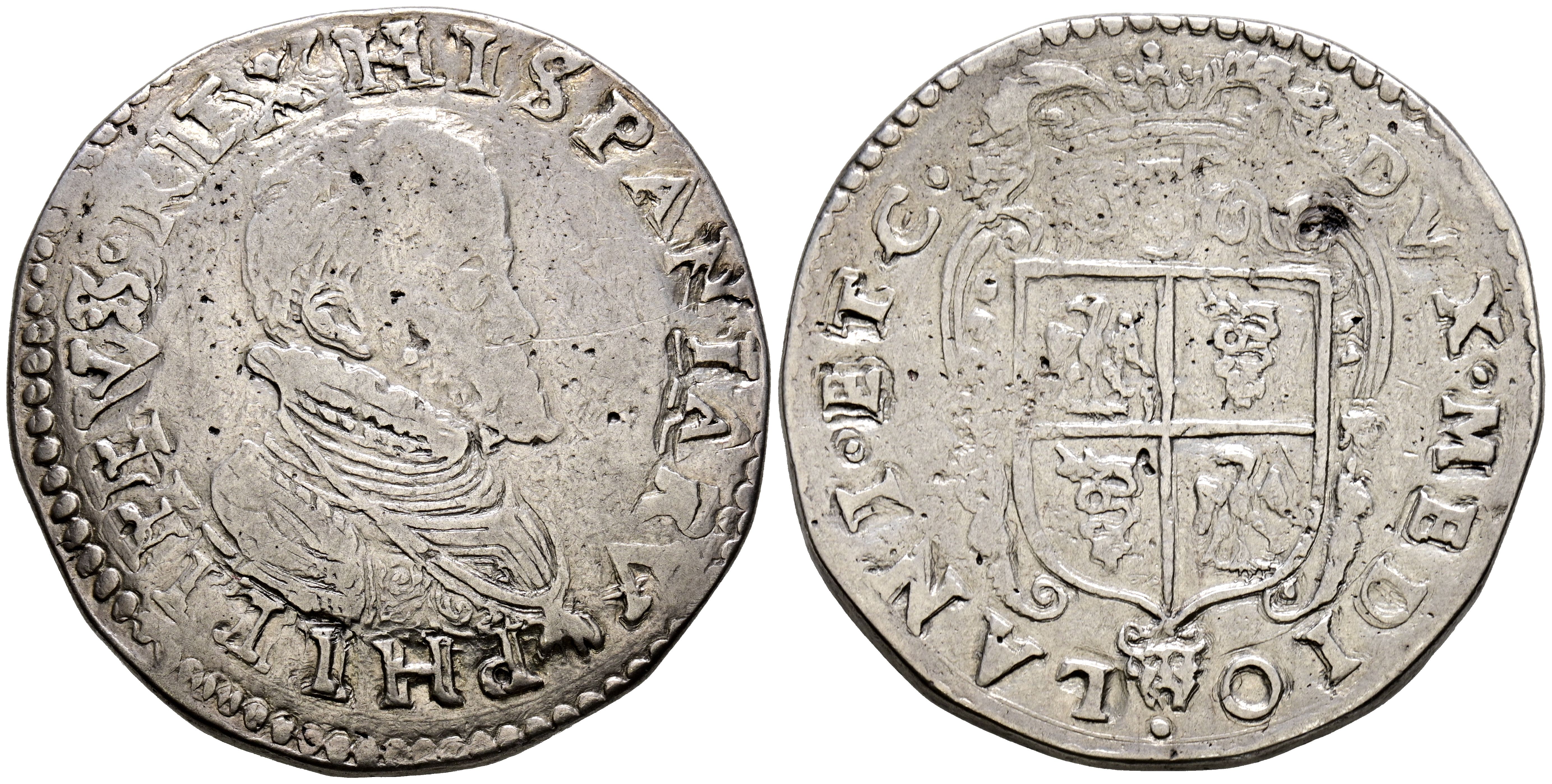 PHILIP II (1556-1598). Ducaton. (Ar. 28.09g/39mm). S/D. Milan. (Crippa 13). VF-. Cleaned.