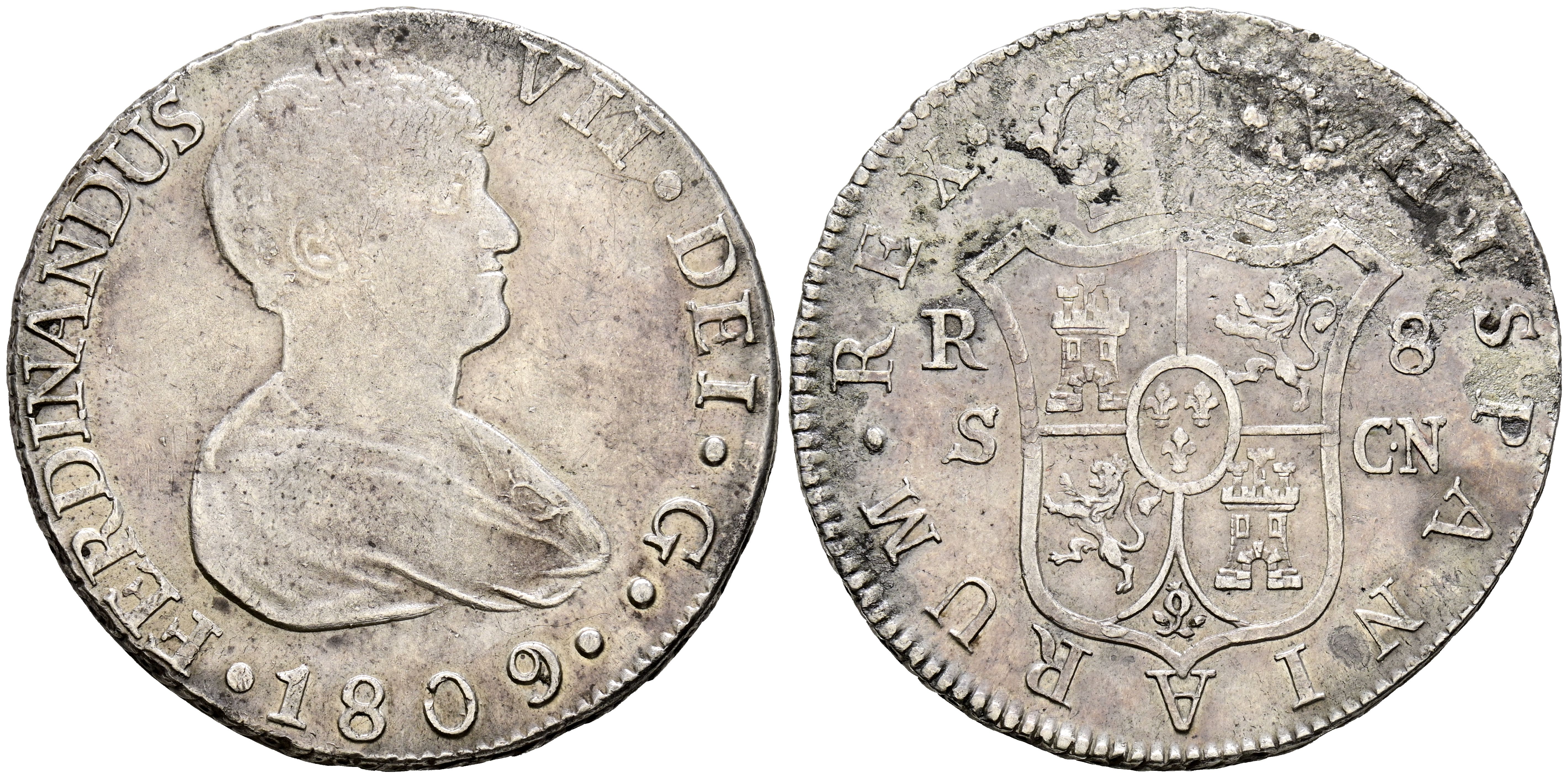 FERNANDO VII (1808-1833). 8 Reales (Ar. 27,03/40mm). 1809. Seville CN. (Cal-2019-1412). Nude bust. VF.