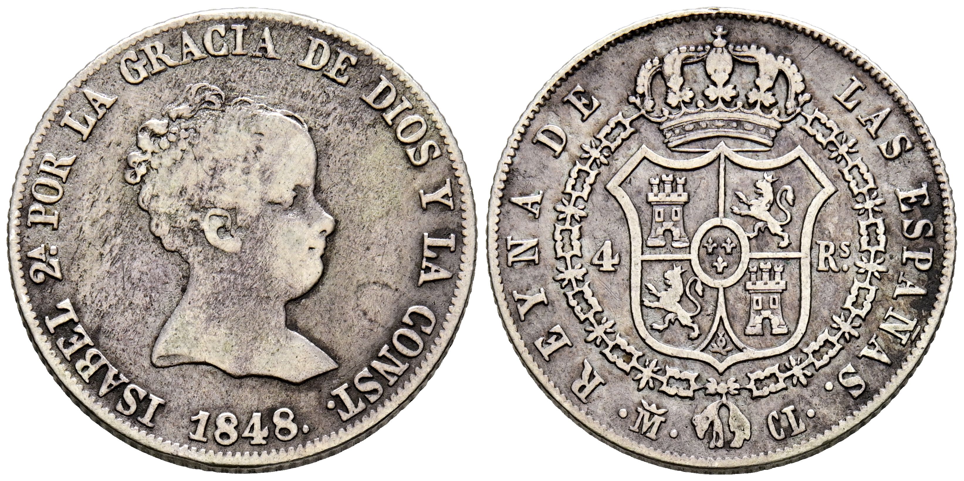 ISABEL II (1833-1868). 4 Reales. (Ar. 5,08g/23mm). 1848. Madrid CL. (Cal-2019-453). VF-.