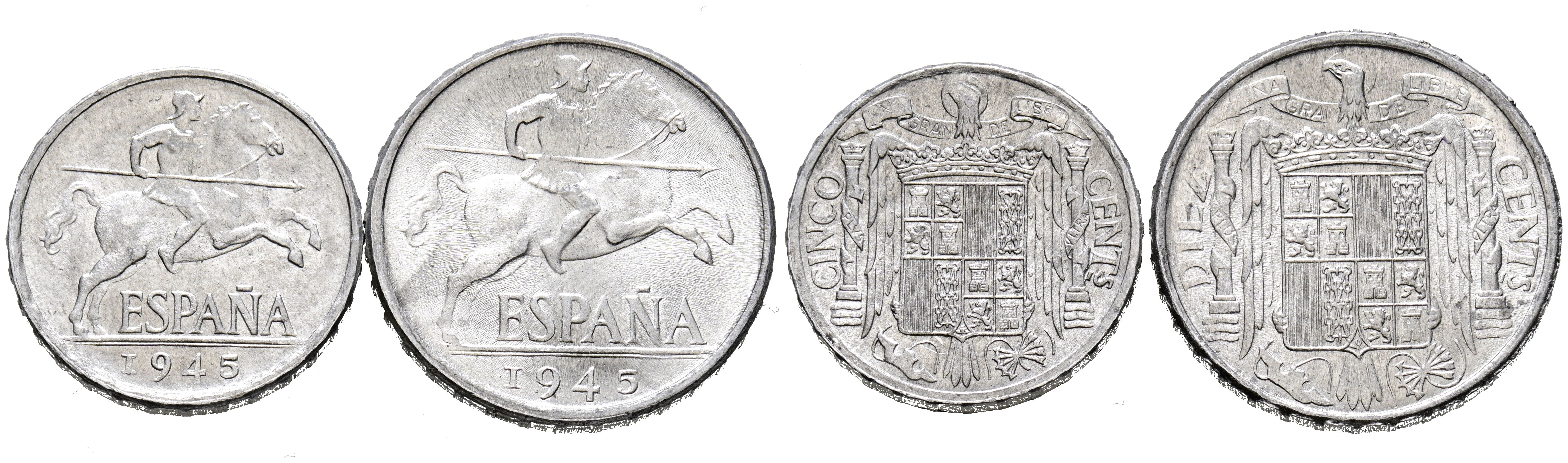 SPANISH STATE (1936-1975). Pair of 5 and 10 Cents. 1945. (Cal-2019-3/11). Uncirculated.