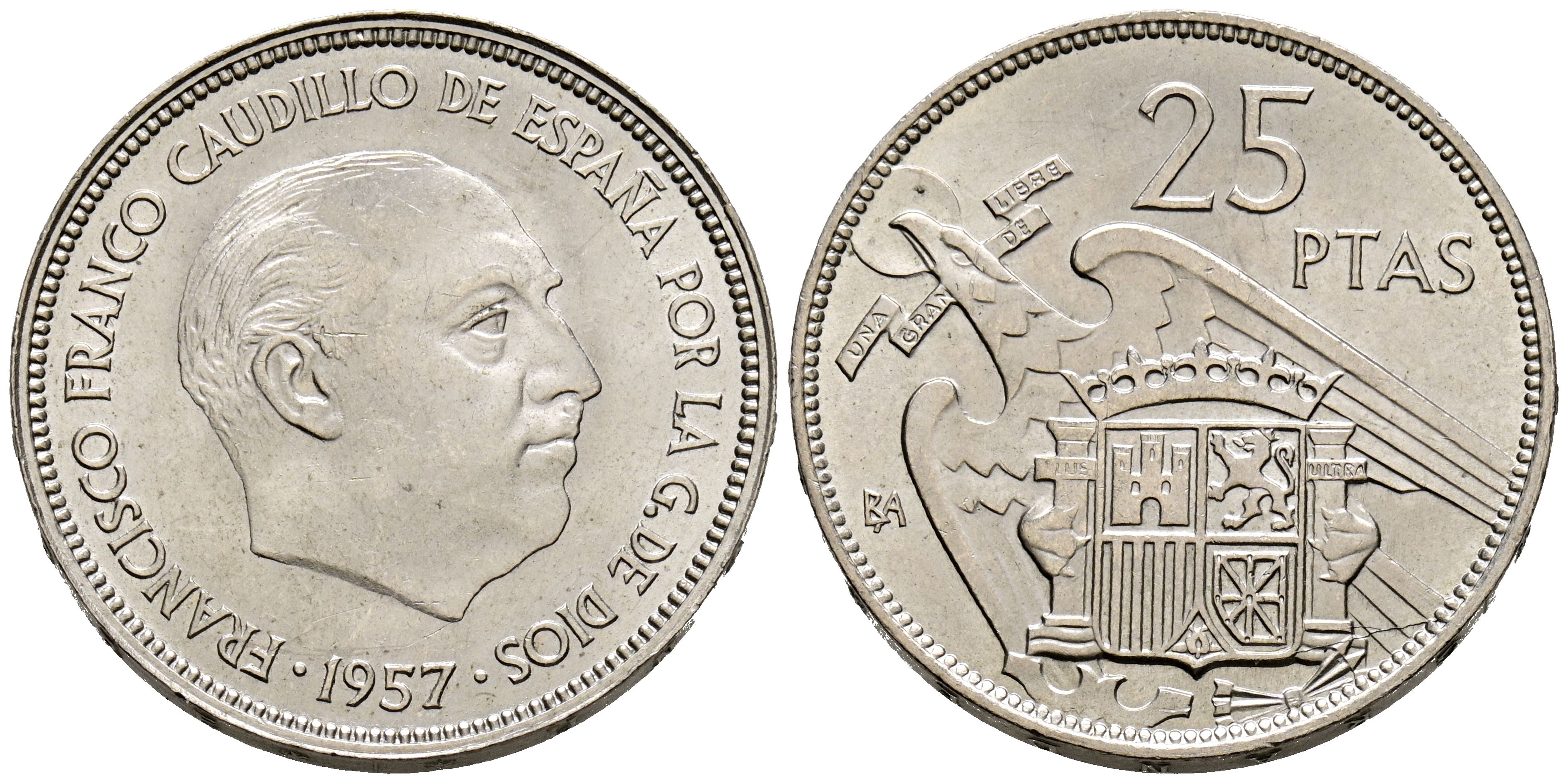 SPANISH STATE (1936-1975). 25 Pesetas. (Ni. 8.56g/26mm). 1957 *BA. (Cal-2019-155). I Ibero-American Exhibition of Numismatics and Medals. Uncirculated-.