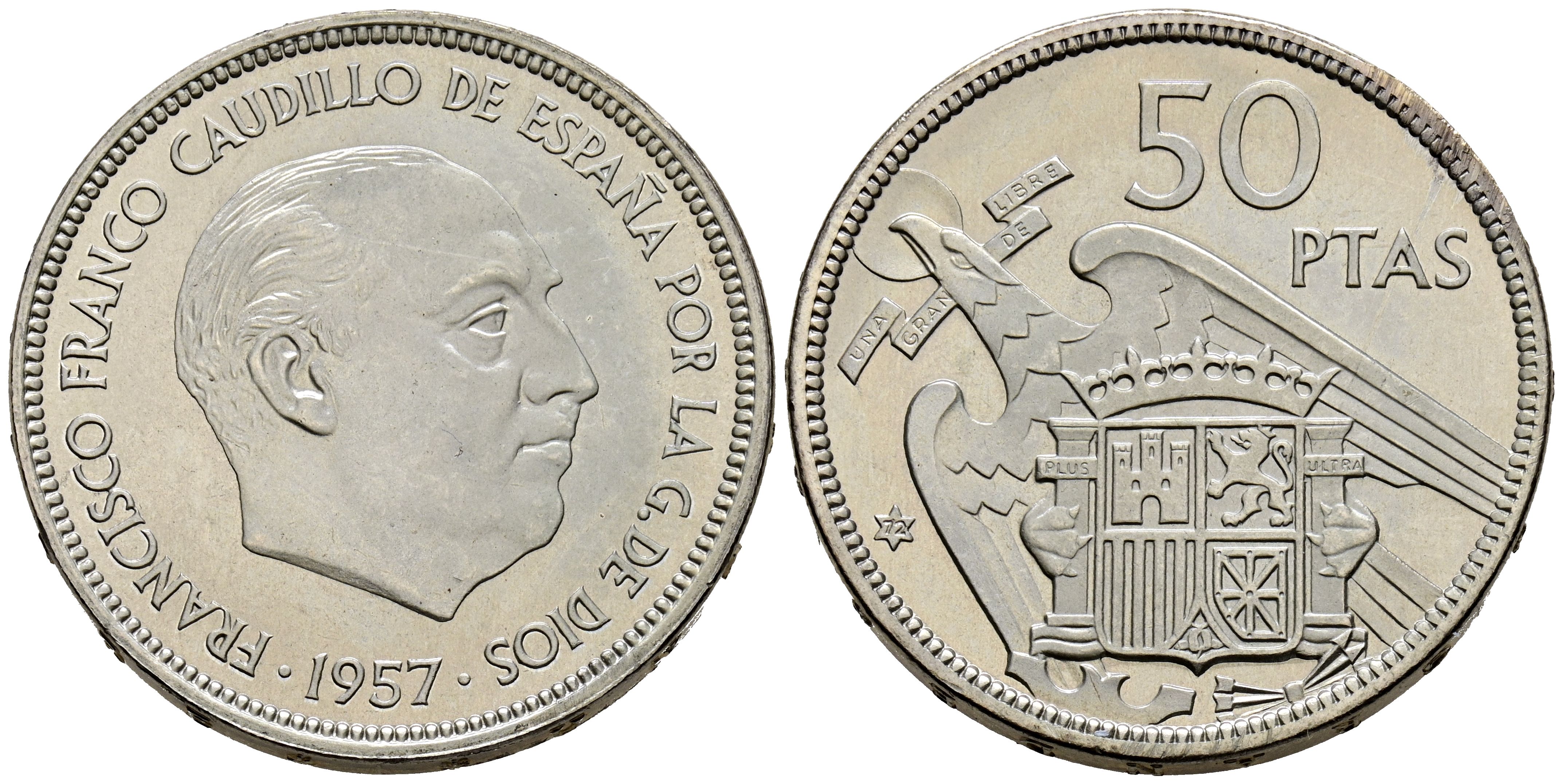SPANISH STATE (1936-1975). 50 Pesetas. (Ni. 12.56g/30mm). 1957 *72. Madrid. (Cal-2019-141). Uncirculated.