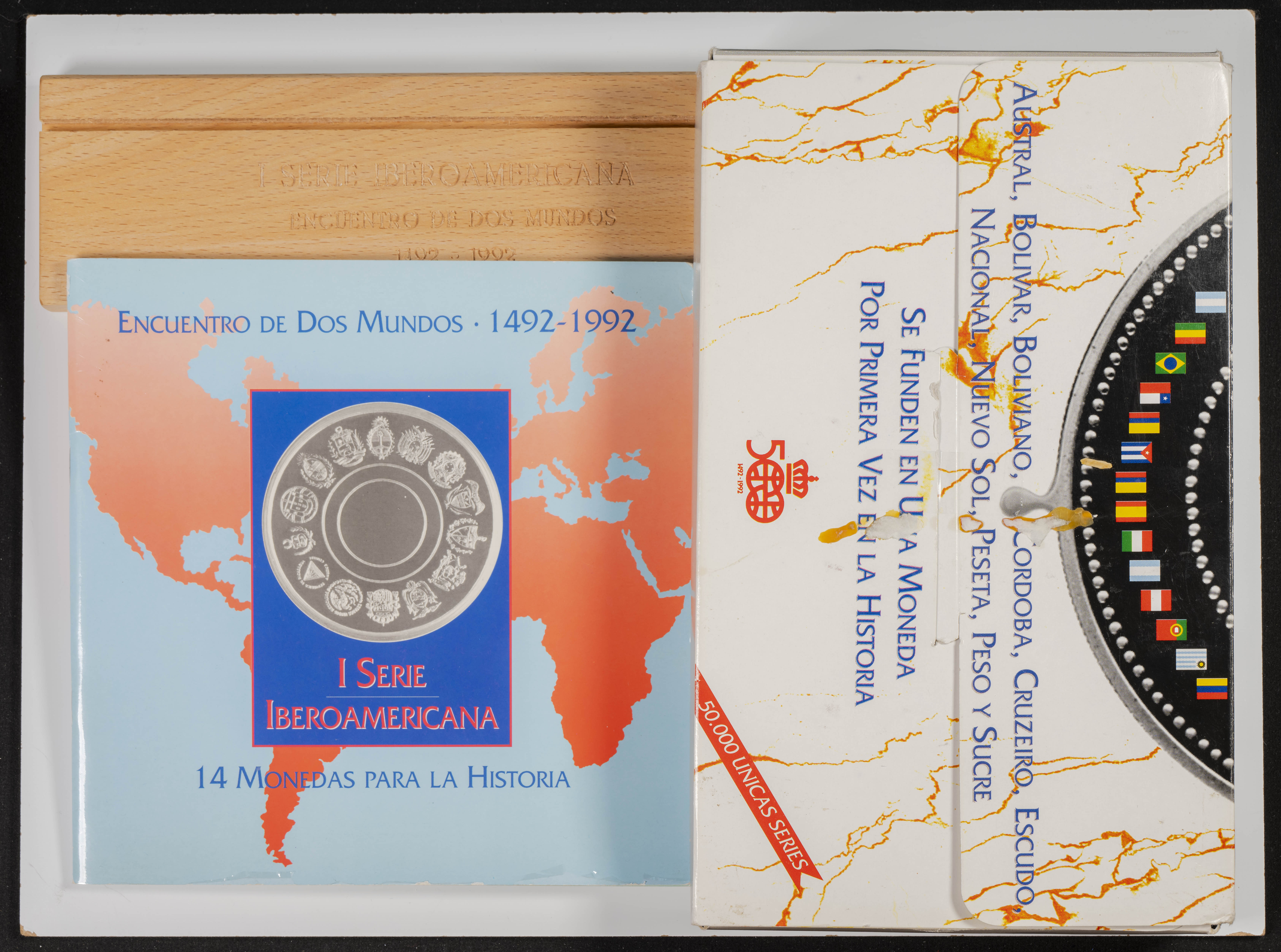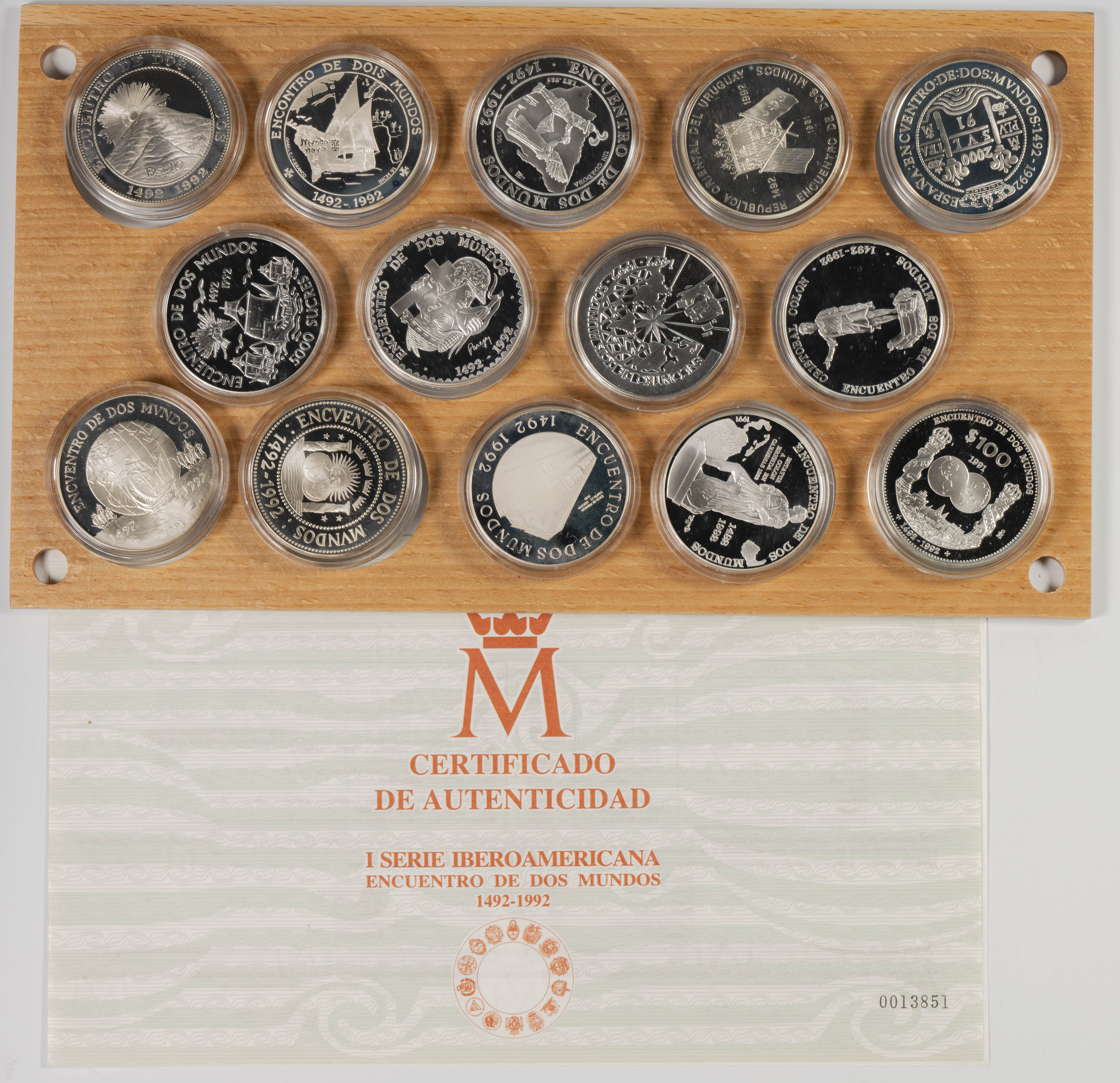 JUAN CARLOS I (1975-2014). I Ibero-American Series. Meeting of Two Worlds (1492-1992). 1991. FNMT. Complete official case containing 14 silver coins, with booklet, display and certificate of authenticity. PROOF quality.
