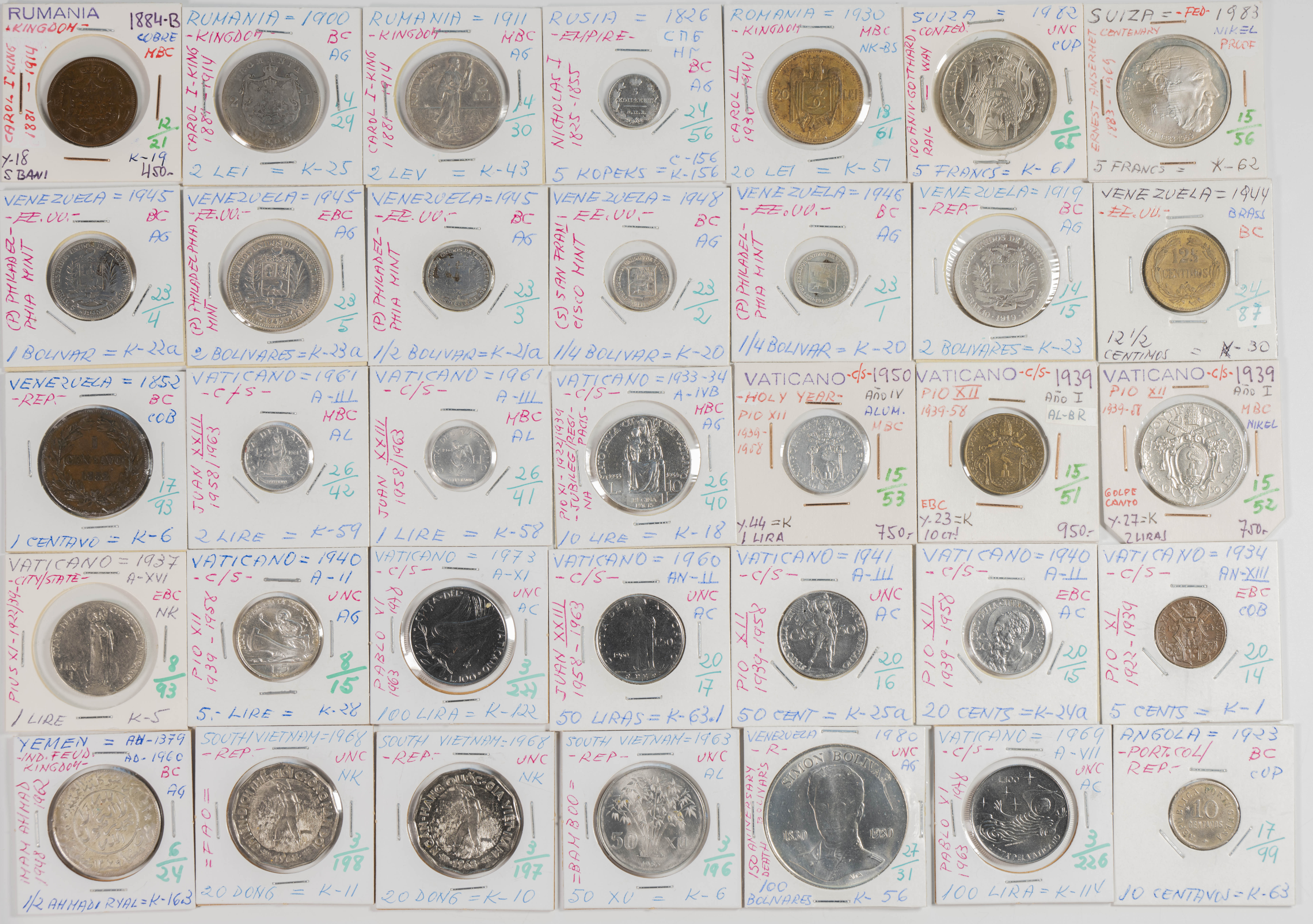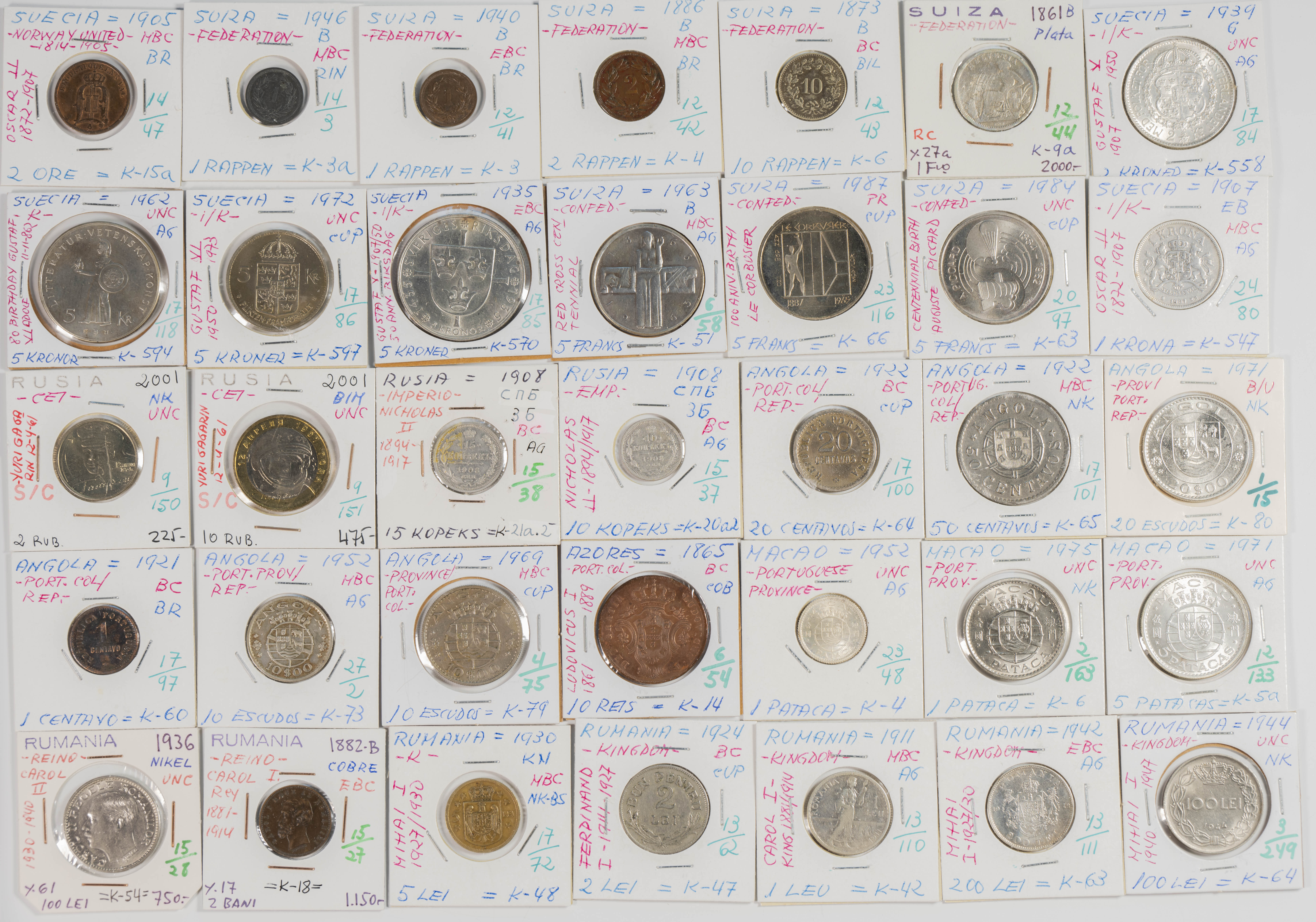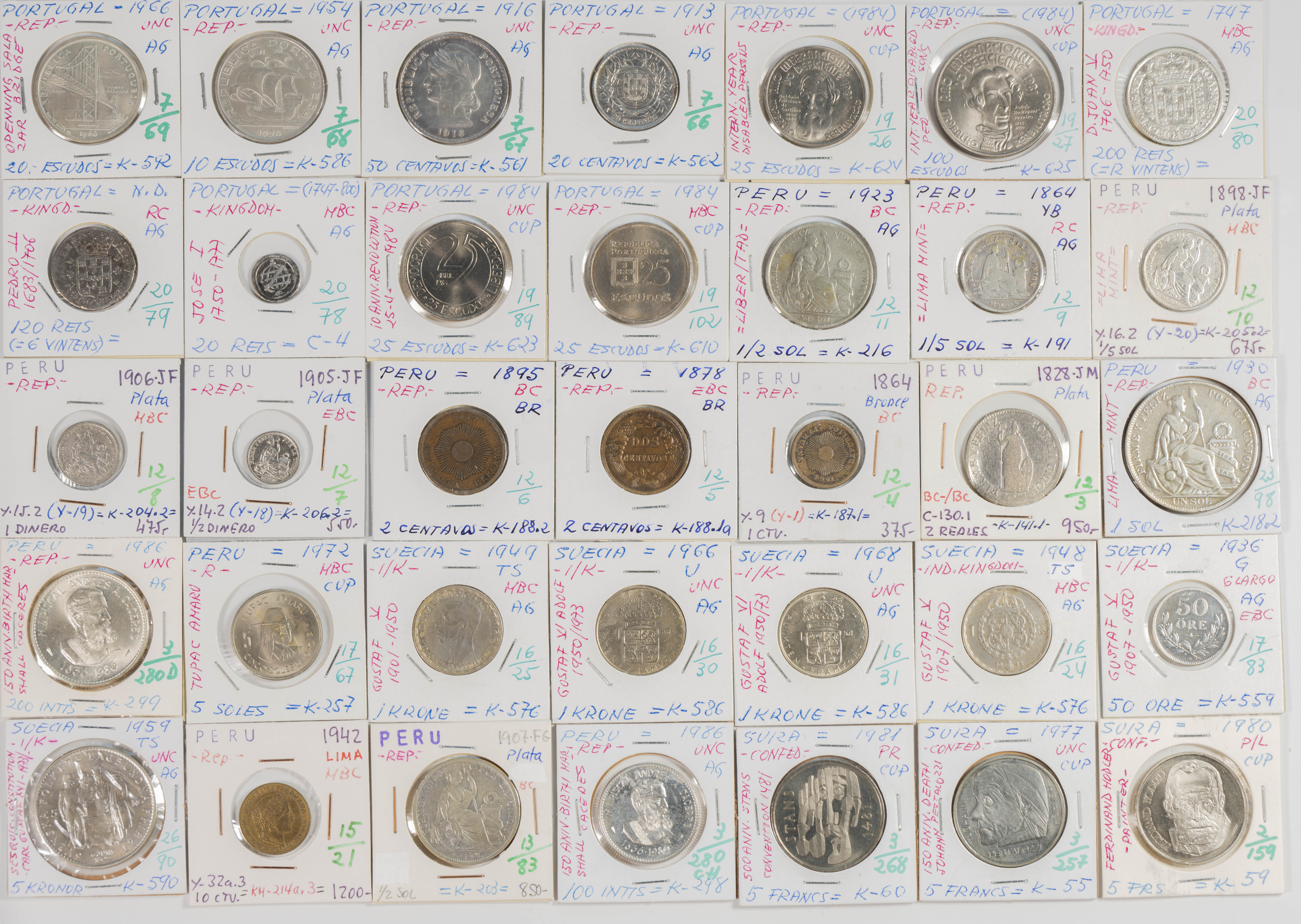 Magnificent collection made up of more than 3000 coins from different periods, mainly from the 19th and 20th centuries, although we also find a good number of examples from the 18th century with a huge variety of countries represented. The typology, theme, modules and dates of the collection are very extensive, highlighting, among others, the enormous quantity of pieces in silver and among them a good number of modules of the troy ounce or duro type. By country we find coins from the 5 continents with special mention for countries of the Commonwealth and former colonies. A great representation of European coins, among which we also find Spanish coins. The set is in a medium/high state of conservation in general, being the result of the work of a single collector and where we hardly find any repeated pieces. ESSENTIAL TO EXAMINE, the lot is sold as is.