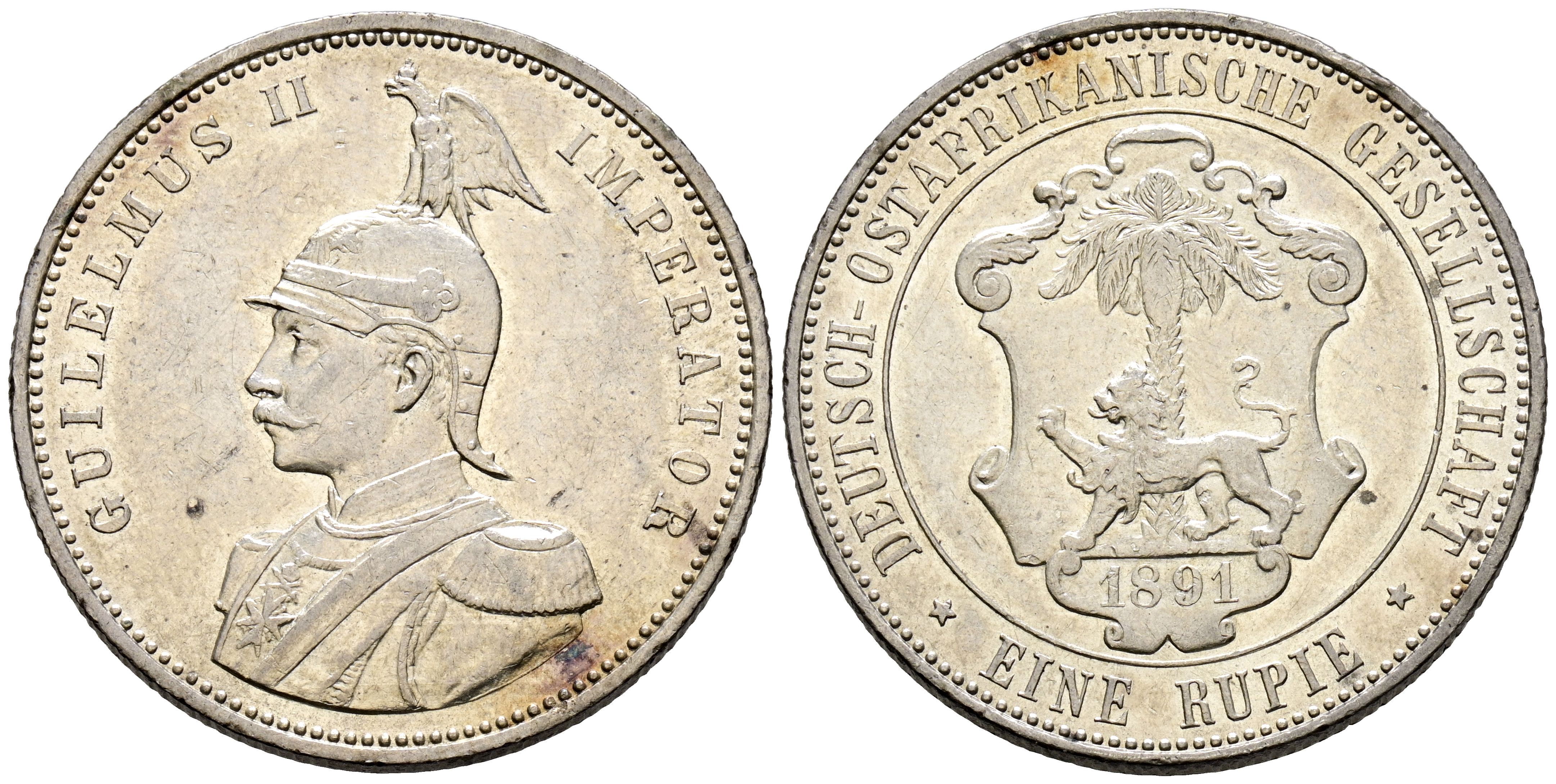 GERMAN EAST AFRICA. 1 Rupee (Ar. 11.65g/30mm). 1891. William II (1888-1918). (Km#2). Very Fine.
