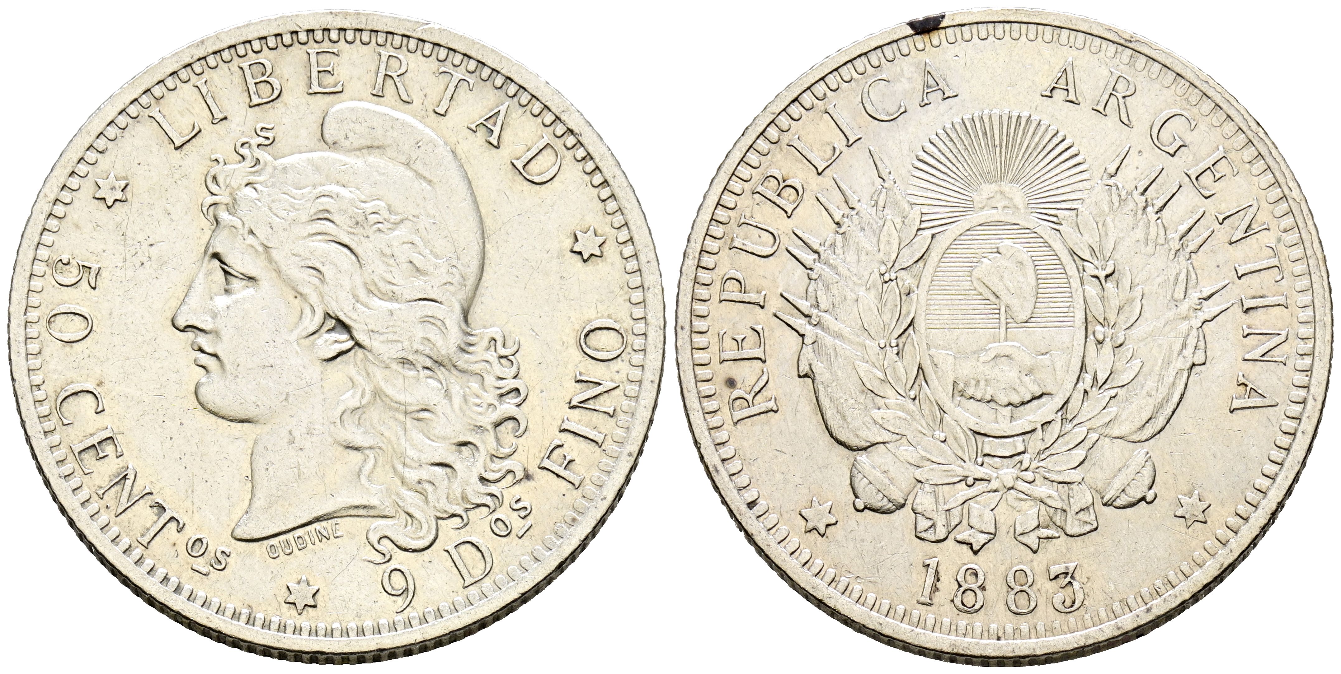 ARGENTINA. 50 Cents (Ar. 12.51g/30mm). 1883. (Km#28). Good Very Fine.
