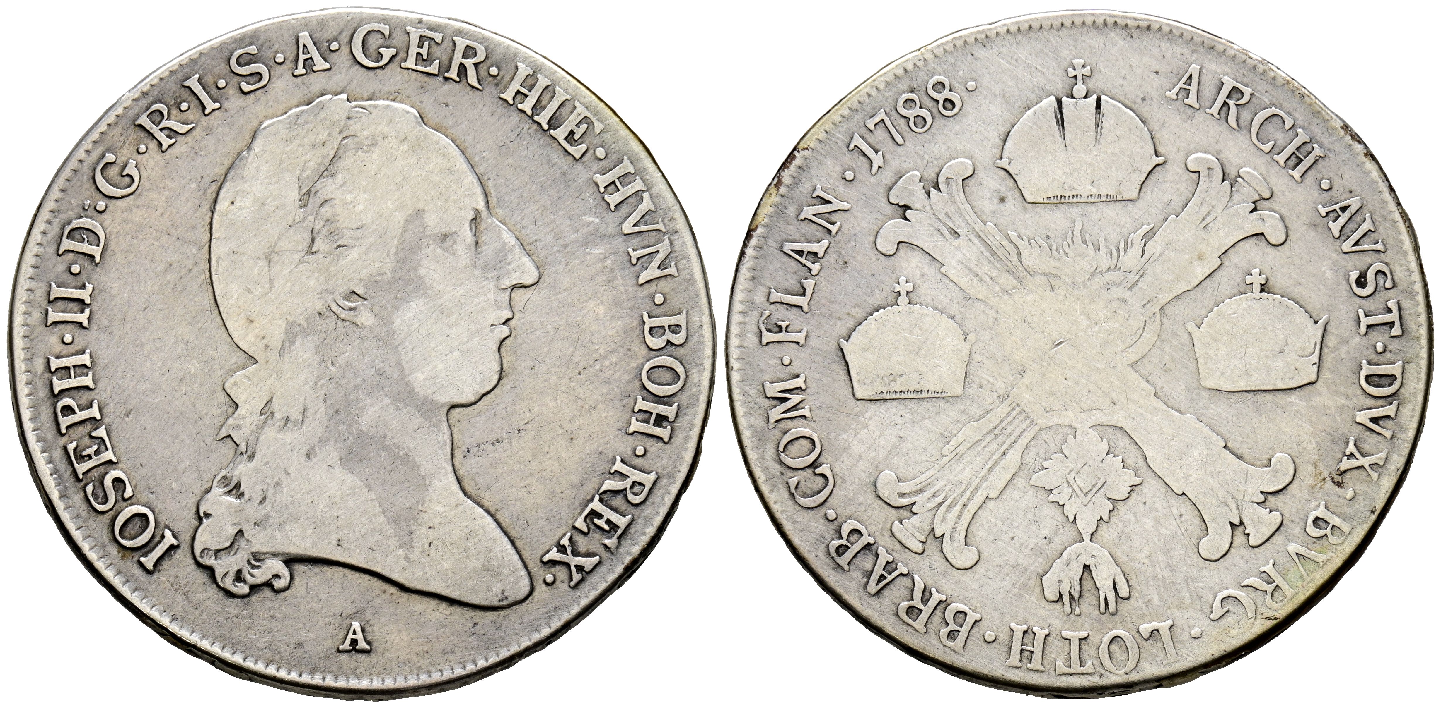 AUSTRIA. 1/2 Kronenthaler (Ar. 14,38g/35mm). 1788. Joseph II. Vienna A. Austrian Netherlands. (Km#34). VF-.